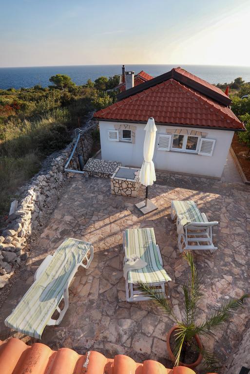 À propos de cet endroit : La maison de vacances Veronika est l'endroit idéal pour une escapade de style Robinson sur l'île de Drvenik Mali en Dalmatie centrale, à proximité de la ville de Trogir, protégée par l'UNESCO. L'île possède l'une des plus belles plages de sable, Vela Rina, dans le style du Blue Lagoon. Nous sommes situés dans une nature intacte, au-dessus de la baie de plage de sable et du cap Kalafate, notre propriété offre donc une vue spectaculaire sur la mer ouverte ; divin à l'aube et au coucher du soleil. Espace : Notre propriété est une maison de plain-pied, entièrement équipée et climatisée, avec une cour dans laquelle une terrasse ensoleillée avec une belle vue sur la mer. Autres remarques : Au sein de la propriété, il y a deux maisons séparées, Veronika et Šimun, qui peuvent être louées individuellement ou ensemble, tout en garantissant l'intimité des clients grâce à l'emplacement de chaque maison. Les deux unités partagent un parking commun clôturé et une spacieuse taverne-grill.