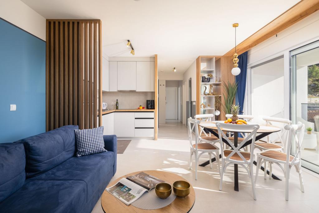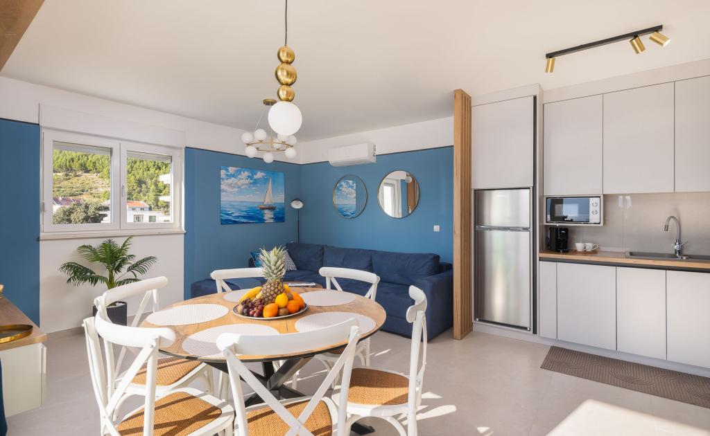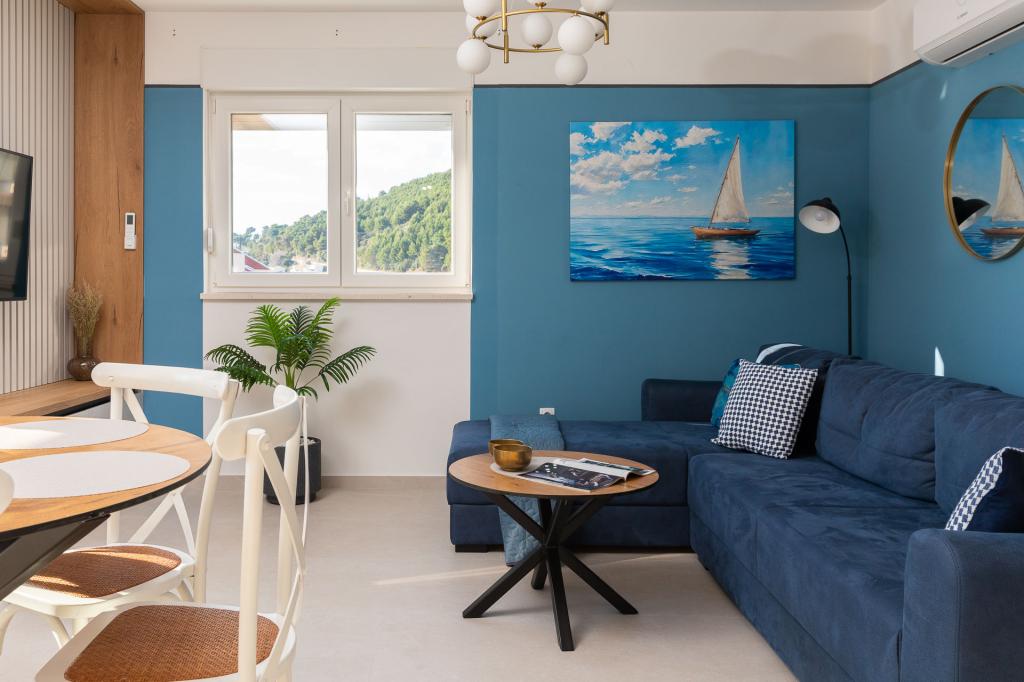 L'appartement Zina est situé à seulement 150 mètres de la plage de Drvenik et propose un hébergement moderne et confortable avec une magnifique vue sur la mer. Il est idéal pour les familles ou les petits groupes souhaitant passer des vacances reposantes au bord de la mer. L'appartement comprend deux chambres, une salle de bains avec WC séparés et un salon avec canapé-lit. Vous profiterez d'un grand balcon avec vue sur la mer, ainsi que d'équipements tels qu'un lave-linge et une place de parking privée dans un garage. Notre personnel est à votre disposition tout au long de votre séjour pour que vos vacances soient agréables et sans souci.