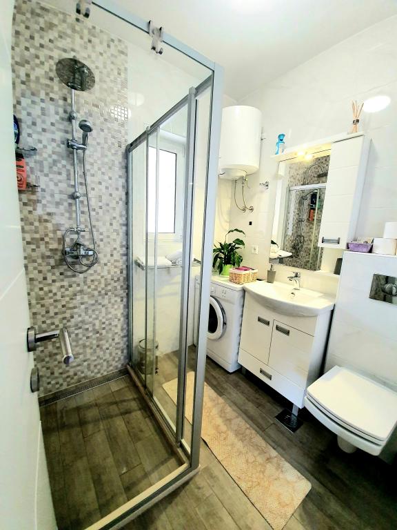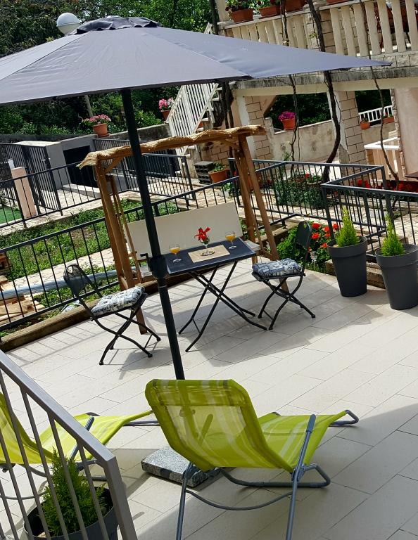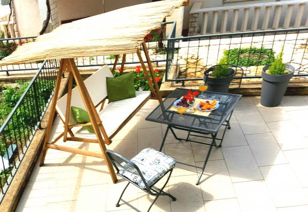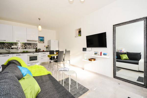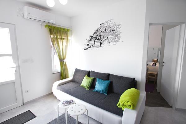 Bienvenue dans le nouveau T1 luxueux, ensoleillé et orienté sud avec une grande terrasse, entièrement équipé, à seulement 10-15 minutes à pied de la vieille ville ! L'appartement dispose de tout le nécessaire pour passer un séjour confortable et agréable même pour une durée plus longue (four, micro-ondes, bouilloire, machine à café, grand réfrigérateur, congélateur, plaque de cuisson, vaisselle, lave-vaisselle, lave-linge, sèche-cheveux, fer à repasser, table à repasser, TV, wifi, climatisation...). Les clients disposent d'une entrée séparée et du calme. Il est idéal pour deux personnes car il dispose d'une chambre avec un lit king size avec un matelas anatomique haut, mais il peut accueillir deux personnes supplémentaires car il y a un canapé dans le séjour qui se déplie en un confortable lit de 160x200. Excellent emplacement, calme, sûr et à environ 10 minutes de la ville, et vous n'avez pas besoin de voiture pour vous rendre dans la vieille ville, mais pour ceux qui n'aiment pas marcher, il y a un arrêt de bus à environ 100 mètres de l'appartement, et les bus 3 et 3a vont directement à Pile, à la gare routière et à l'embarcadère principal (pour les déplacements vers les îles).