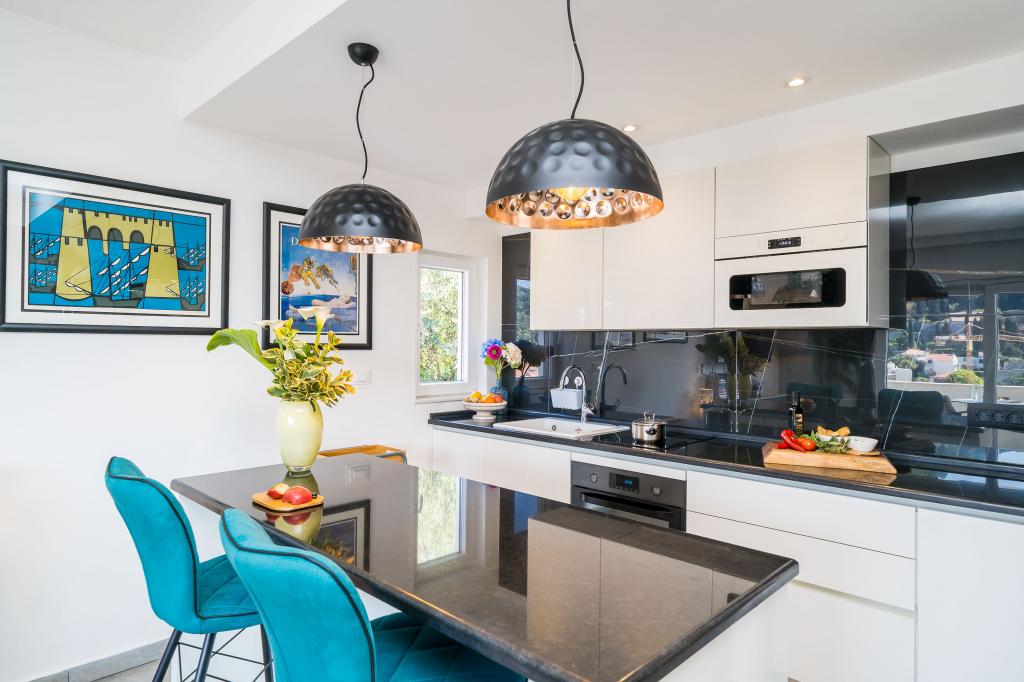 Quel appartement !! Du luxe pur, tous très exclusifs. Joliment décoré et très, très propre. Une vue fantastique sur la mer et la banlieue. Plage à proximité, également quelques restaurants et le supermarché juste au coin de la rue, mais très calme. Parking à la maison. L'hôtesse est très arrangeante et nous a beaucoup aidés lorsque notre voiture est tombée en panne. Nous recommandons.