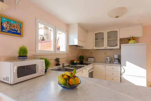 Villa rénovée du 15ème siècle est situé dans le centre de la vieille ville. Il se compose de 150m2, 3 chambres, 2 salles de bains, salon, la cuisine, terrasse avec une belle vue sur les toits de la vieille ville, des églises, des murs et de la mer. A proximité de tout, vous donne la possibilité de visiter des musées, des magasins, des églises, des restaurants, des plages.
