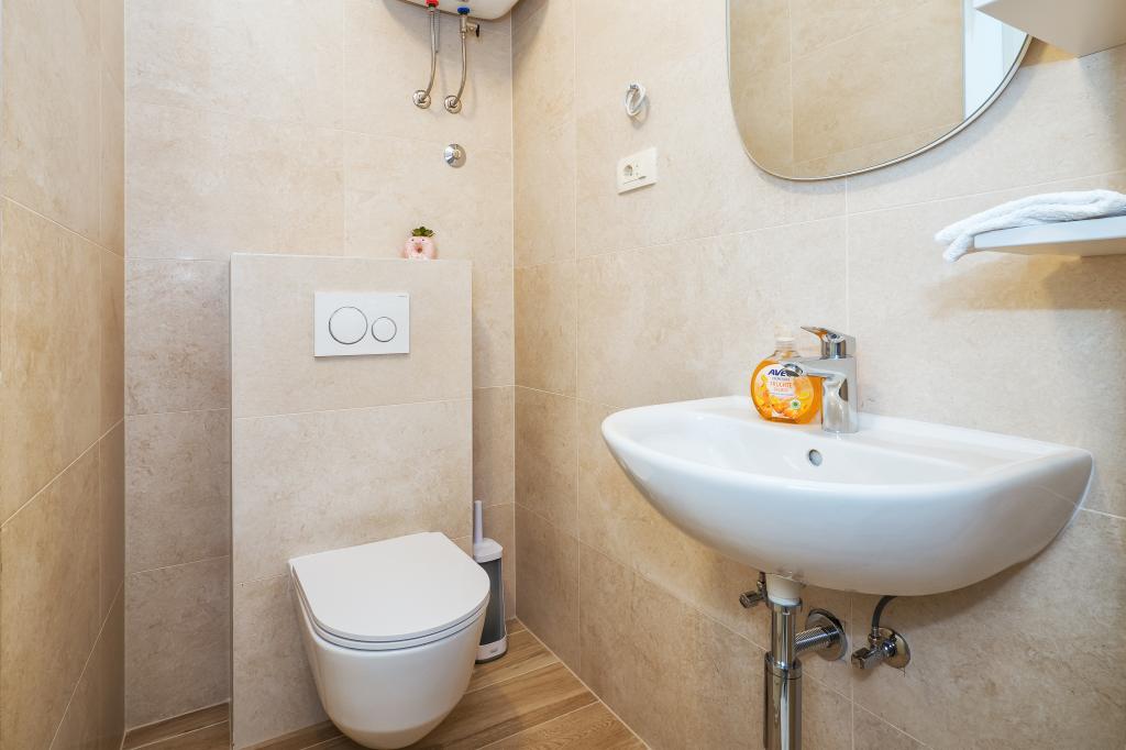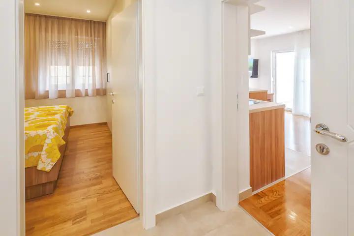 Nous étions dans l'appartement pour 4 personnes, dans la deuxième maison. Nous avons aimé notre appartement spacieux et très bons hôtes. La plage est vraiment parfait, et la maison est super proche de lui - avec son chemin privé à la plage. La ville à proximité de Omis est aussi très agréable. Recommander pour les familles avec enfants en particulier.