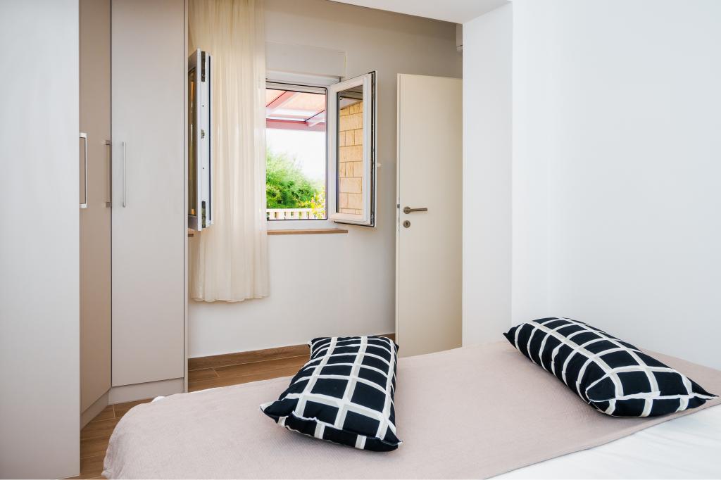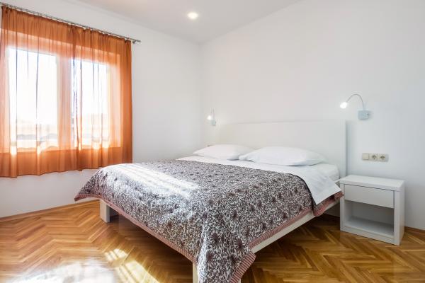 Aux Appartements Bruna, nous vous proposons un hébergement dans une maison à seulement quelques mètres de la mer et de la plage de sable. Il est important de noter que nous proposons 2 appartements au rez-de-chaussée de la maison directement sur la plage - idéal pour les personnes âgées et les familles avec de jeunes enfants. Dans la maison, à quelques pas derrière elle (bien sûr, en dessous de la route principale), au deuxième étage (du balcon duquel vous avez une vue dégagée sur la mer et les îles), nous vous proposons un hébergement dans des appartements récemment rénovés. Passez vos vacances dans des appartements entièrement équipés, situés juste à côté de la mer, à l'ombre des tamaris sur une belle plage de sable !