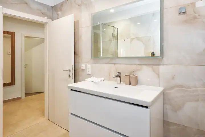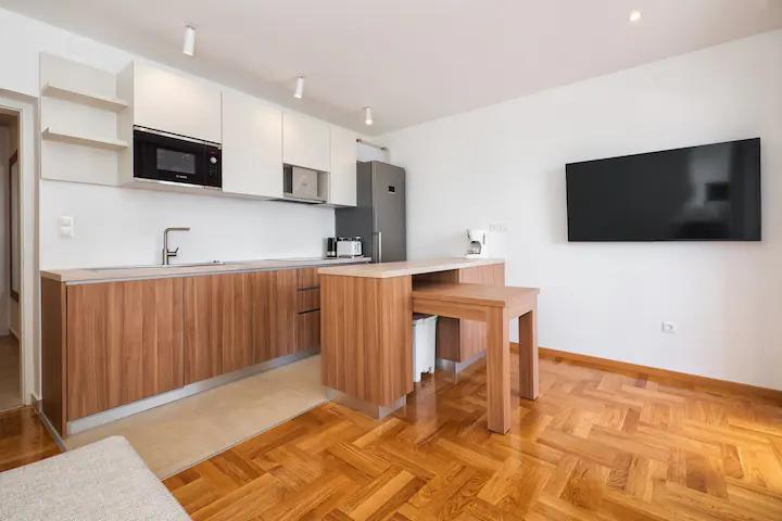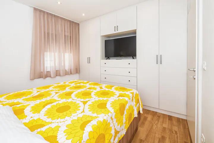 Je recommande ces appartements. C'est un endroit magnifique avec des montagnes juste à côté de la côte. Sentiers de randonnée et belles vues. A proximité d'excellents bars et pizzerias, belle plage de sable, pour les enfants comme fait, hébergement directement sur la plage. Appartements super propres. Nous serions ravis de revenir ici un jour.
