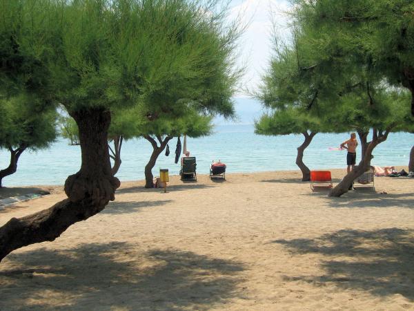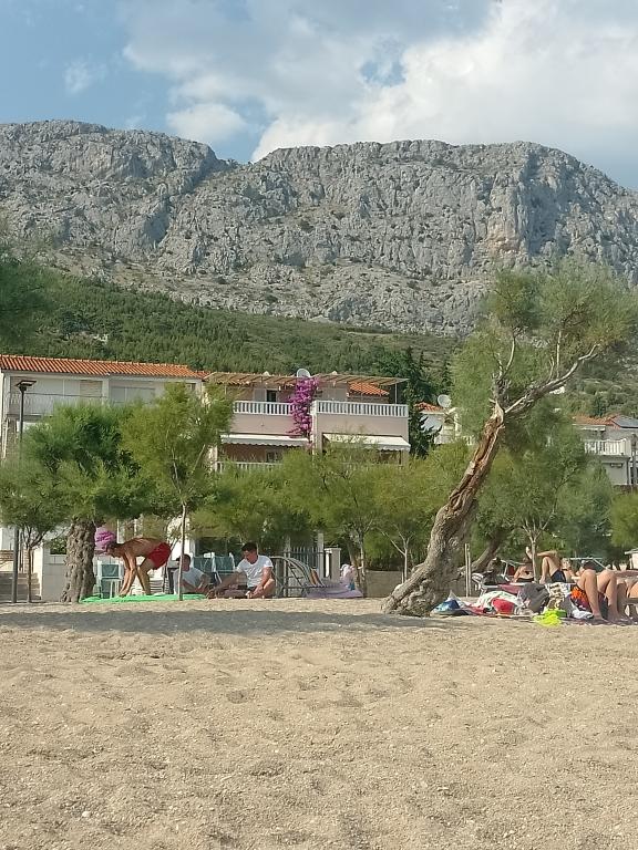 Fantastique! Propre, beaucoup d'espace à deux pas de la plage de sable avec des arbres. La vue est incroyable Grand réfrigérateur supplémentaire dans le hall pour 2 appartements. Climatisation gratuite. Pas de frais climatiques. Au centre d'Omis, pont, 20 min à pied. Quartier calme mais il y a des locaux donc on peut aussi sortir boire un verre ou se restaurer. Je recommande fortement