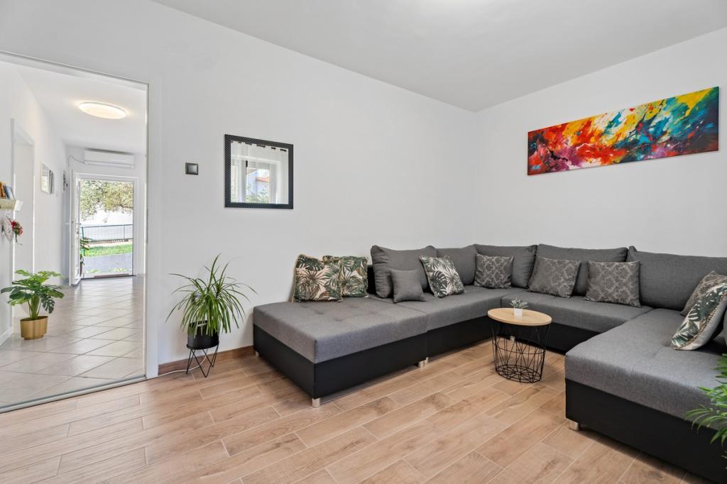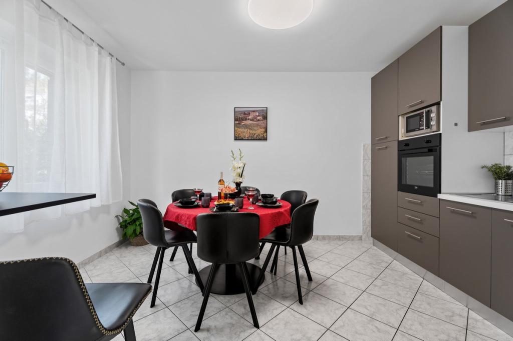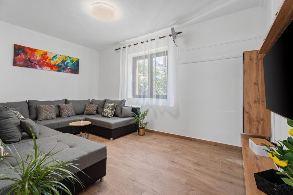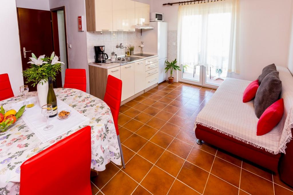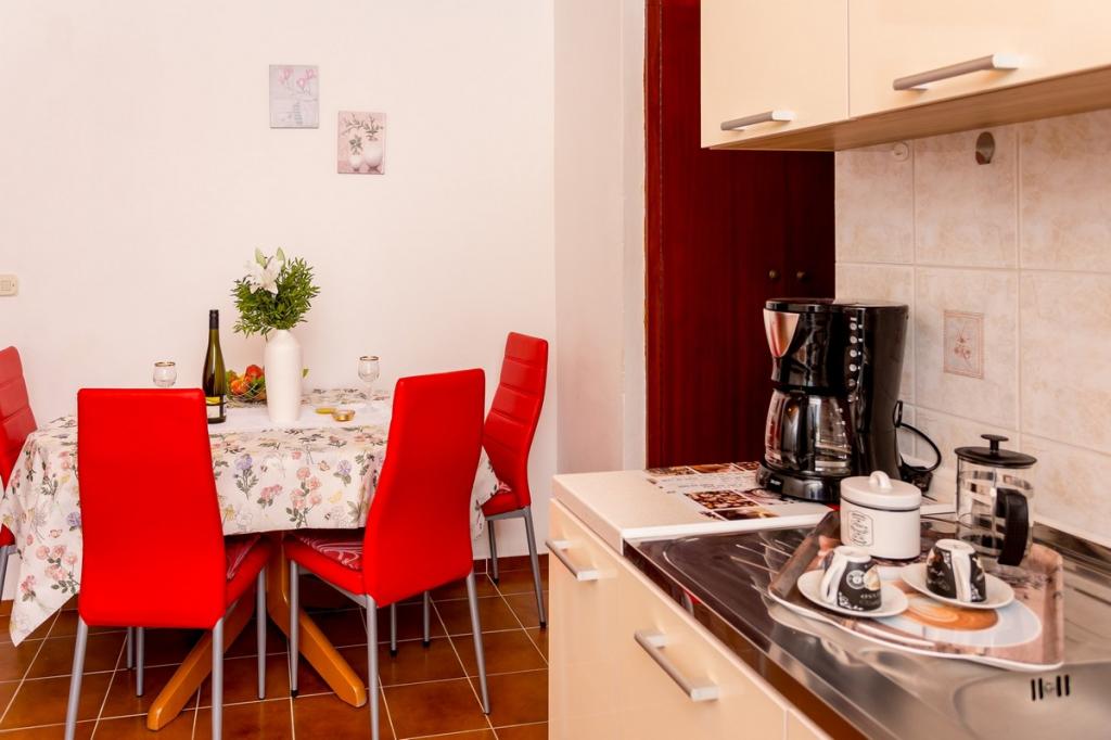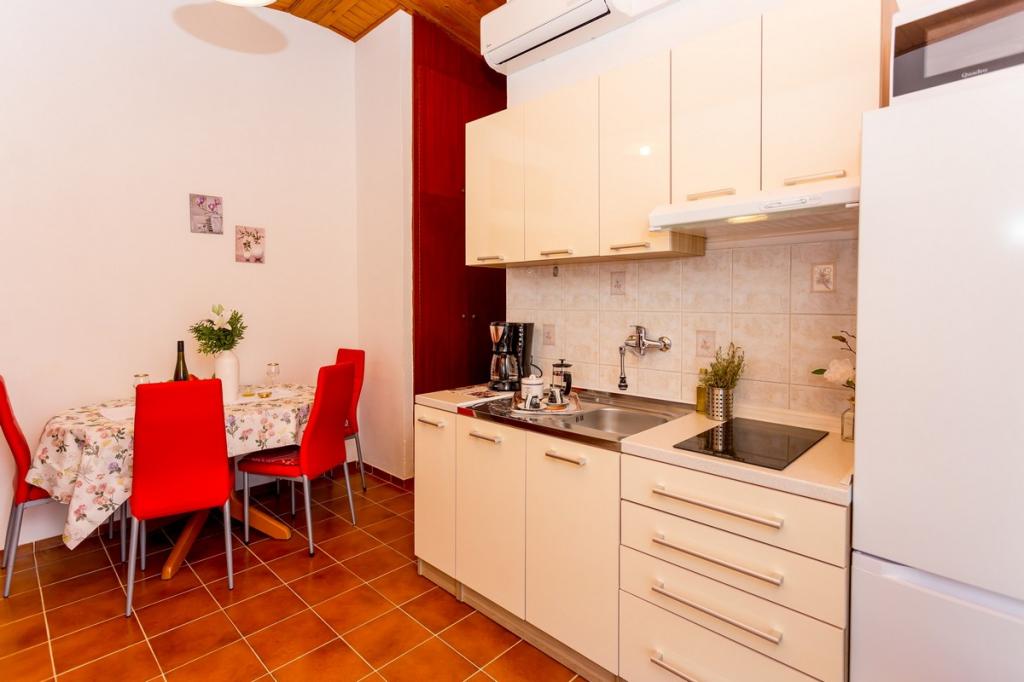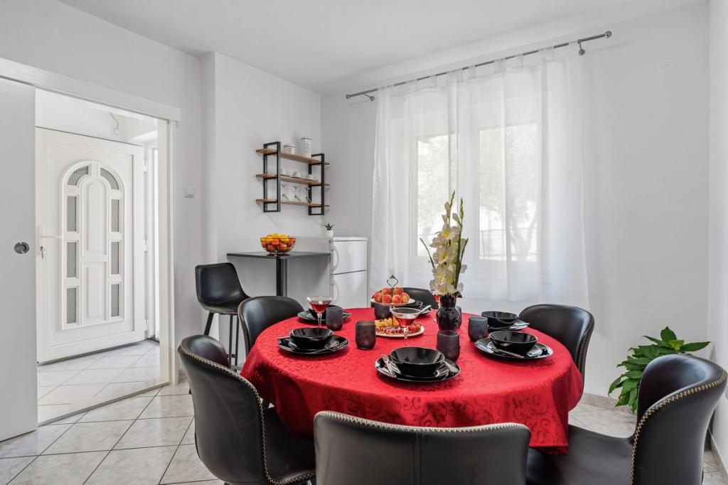 Les appartements Miroslav Vojnović sont situés en plein centre de la ville touristique de Duće, sur la riviera de Split-Omis. Maison familiale avec un grand jardin et une vue magnifique sur la mer. La belle plage de sable est idéale pour des vacances en famille avec des enfants. La plage est à seulement 50 m de la maison. Les clients ont à leur disposition cinq appartements confortables et équipés qui offrent le sentiment d'être chez eux pendant vos vacances. L'arrivée est possible n'importe quel jour de la semaine. Les appartements sont disponibles à partir de 10h00 le jour de l'arrivée. Cela permet aux clients de rester plus longtemps et d'adapter leur plan de voyage à leurs besoins. Le grand appartement A5 pour 4+2 personnes avec terrasse privée est situé au rez-de-chaussée de la maison. D'autres appartements confortables A1, A2, A3 & A4 pour 2 personnes sont situés au deuxième étage de la maison et sont tous équipés de la climatisation. Nous offrons également la possibilité de combiner des appartements plus petits en fonction des besoins du client. Proximité des grands centres-villes (Split 20 km, Omiš 3 km).