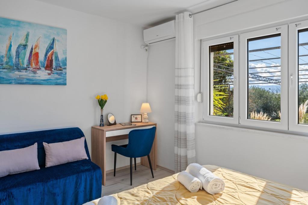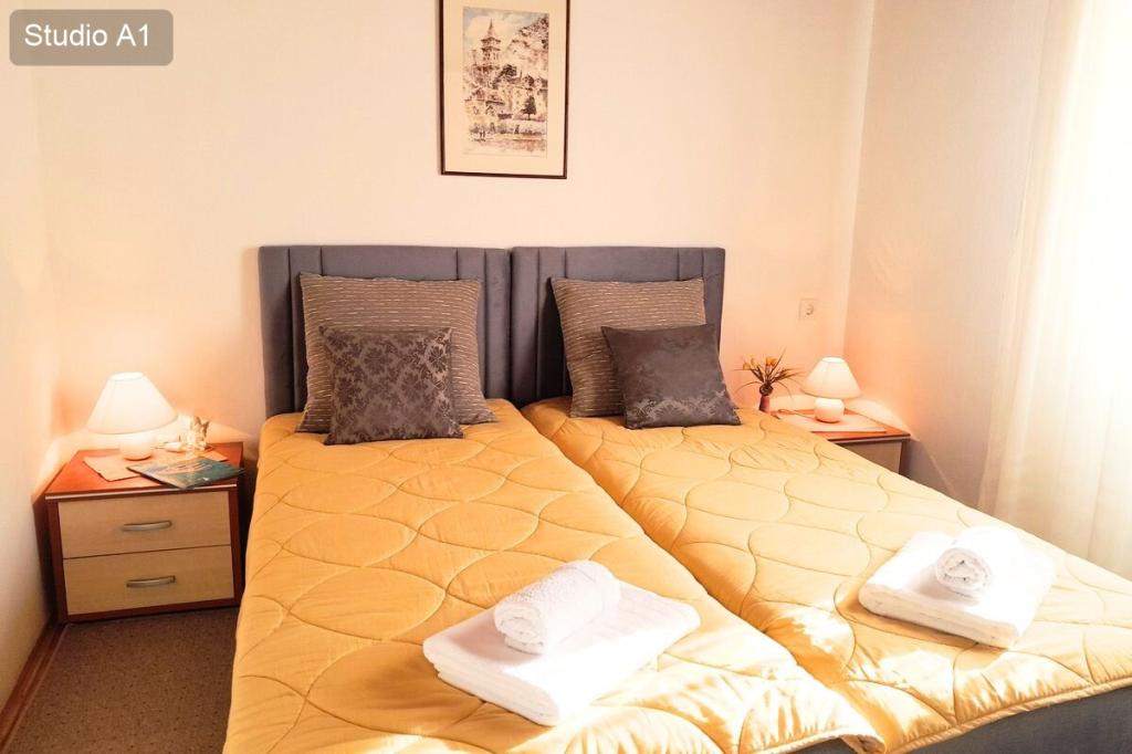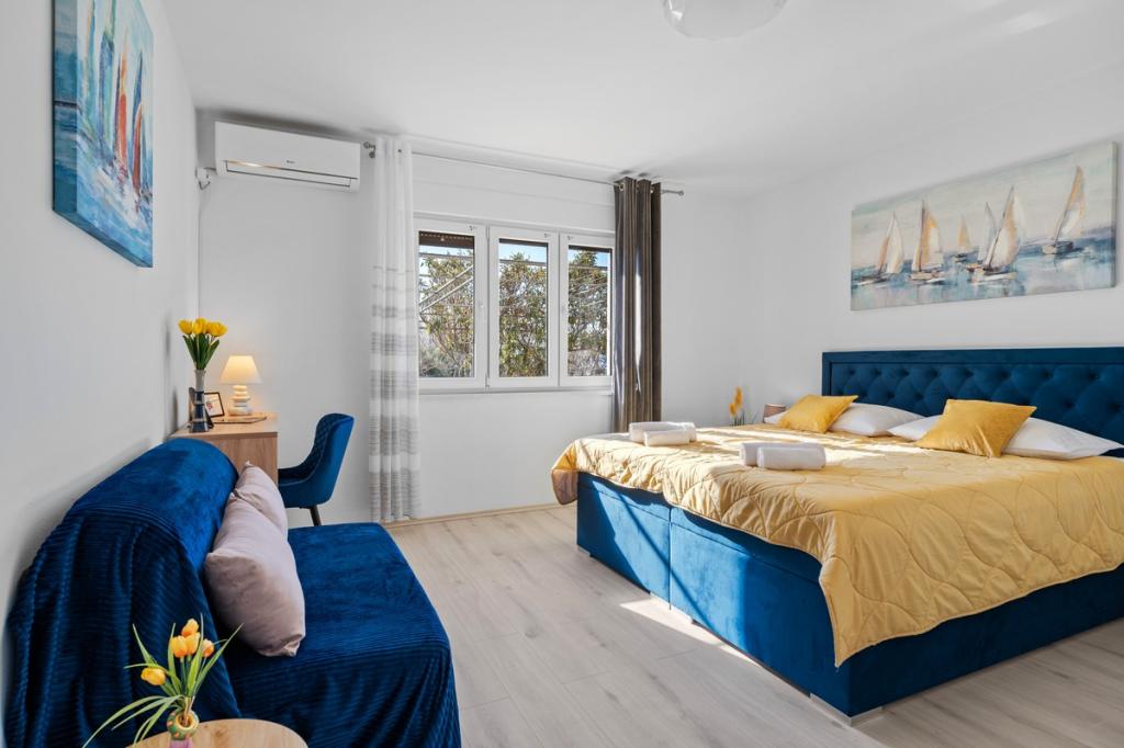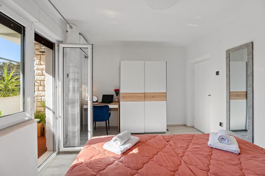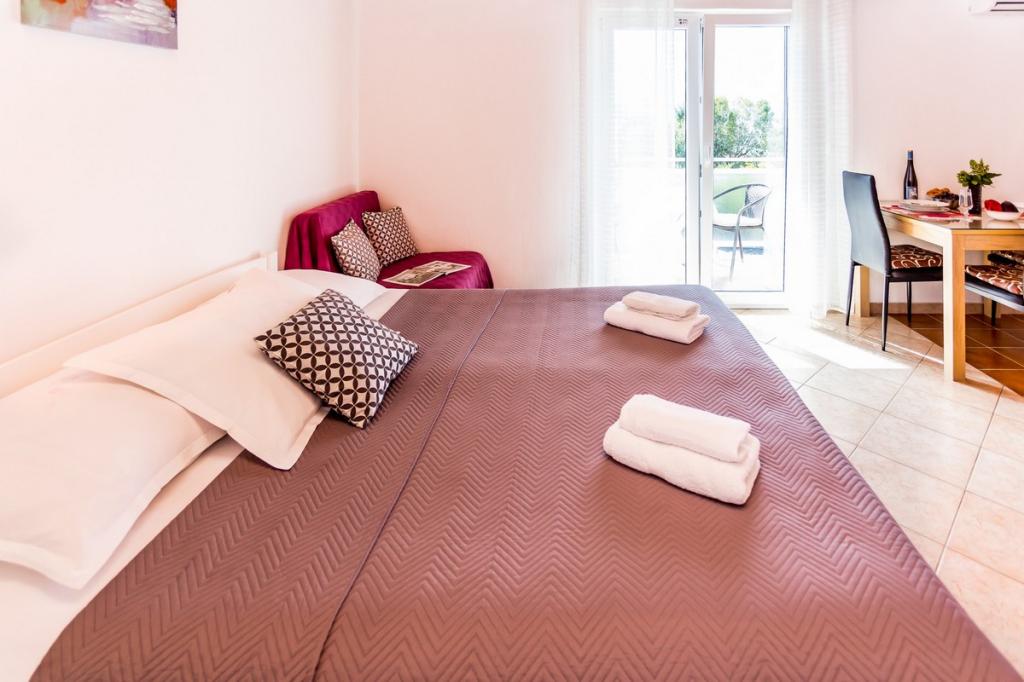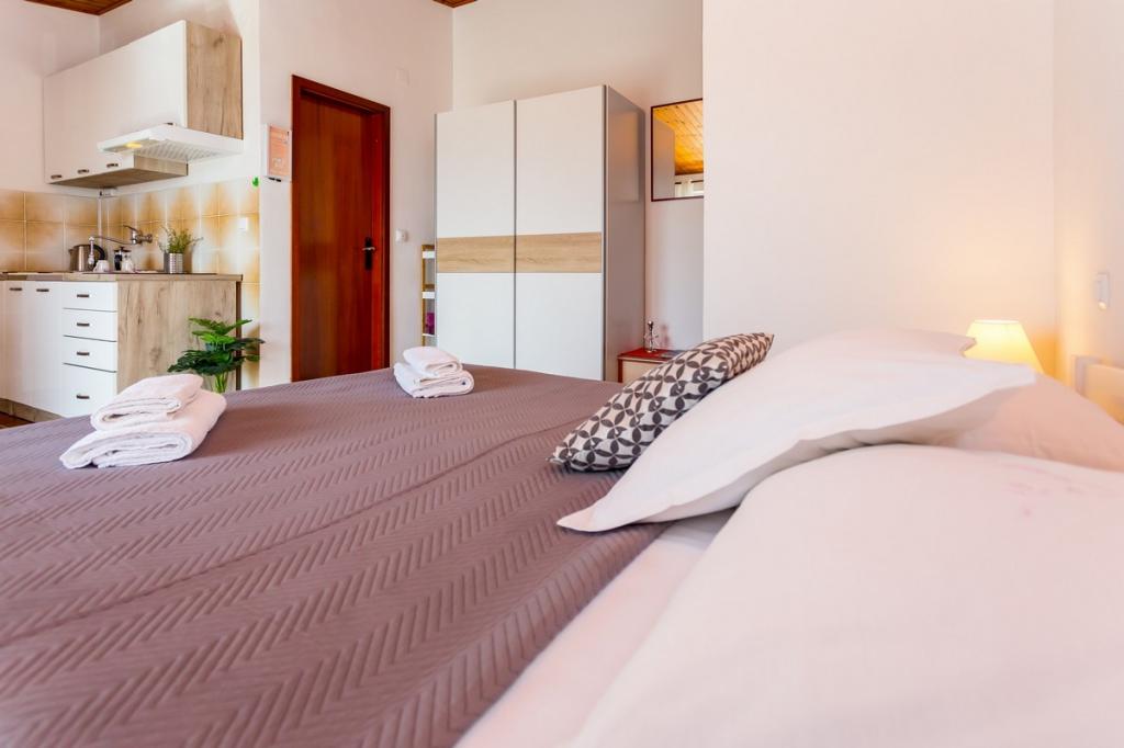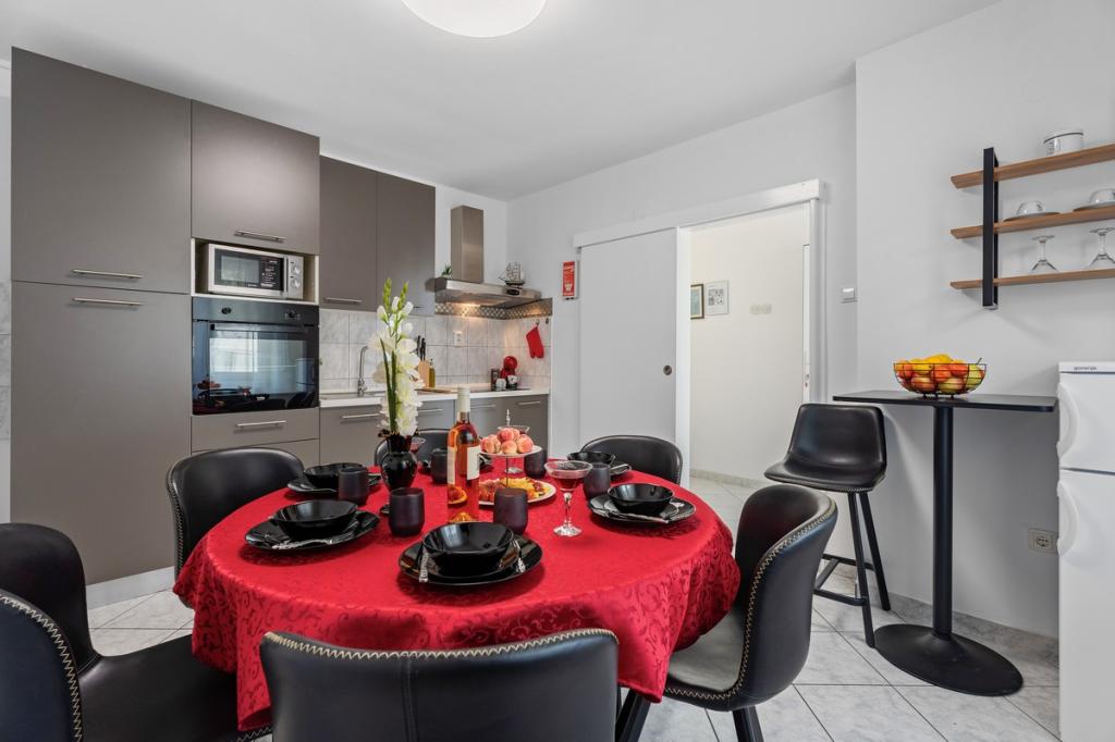 Les appartements Miroslav Vojnović sont situés en plein centre de la ville touristique de Duće, sur la riviera de Split-Omis. Maison familiale avec un grand jardin et une vue magnifique sur la mer. La belle plage de sable est idéale pour des vacances en famille avec des enfants. La plage est à seulement 50 m de la maison. Les clients ont à leur disposition cinq appartements confortables et équipés qui offrent le sentiment d'être chez eux pendant vos vacances. L'arrivée est possible n'importe quel jour de la semaine. Les appartements sont disponibles à partir de 10h00 le jour de l'arrivée. Cela permet aux clients de rester plus longtemps et d'adapter leur plan de voyage à leurs besoins. Le grand appartement A5 pour 4+2 personnes avec terrasse privée est situé au rez-de-chaussée de la maison. D'autres appartements confortables A1, A2, A3 & A4 pour 2 personnes sont situés au deuxième étage de la maison et sont tous équipés de la climatisation. Nous offrons également la possibilité de combiner des appartements plus petits en fonction des besoins du client. Proximité des grands centres-villes (Split 20 km, Omiš 3 km).