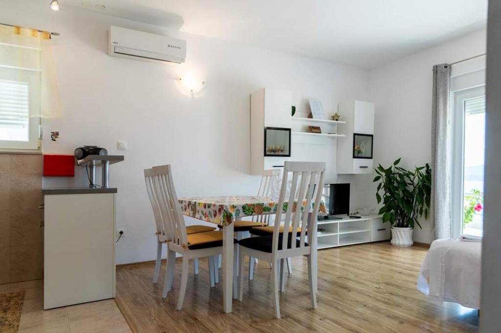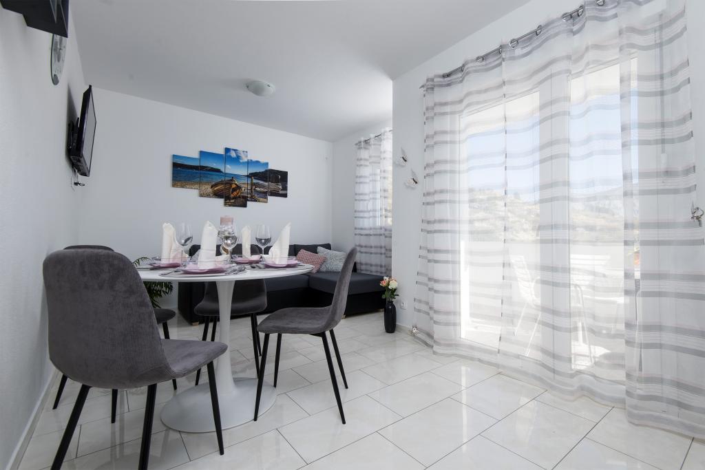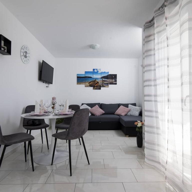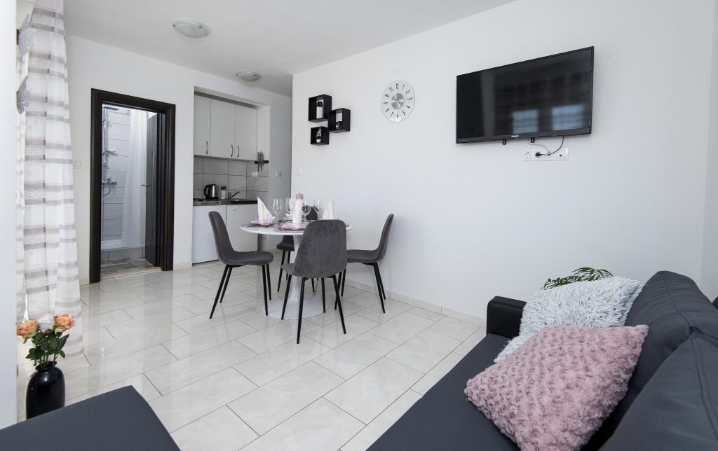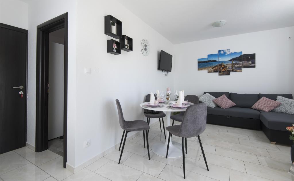 Appartements entièrement rénovés et climatisés avec vue sur la mer dans un lieu touristique calme. A proximité de divers services, commerces, bars, restaurants. Sur la plage de sable, ainsi que sur la mer limpide, diverses installations sportives et récréatives sont proposées. Nos clients bénéficient également de réductions sur certains restaurants, du rafting, des promenades en bateau dans le canyon de la rivière Cetina, des promenades en bateau vers l'île de Brac, du jet-ski, de la location de bateau et des promenades en banane et en tube pour les plus jeunes. Le prix comprend internet, SAT, parking privé et utilisation du barbecue extérieur.