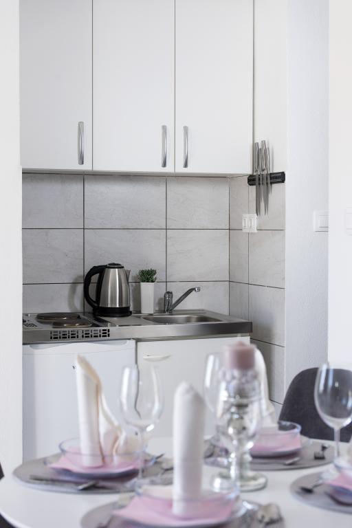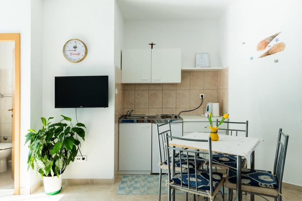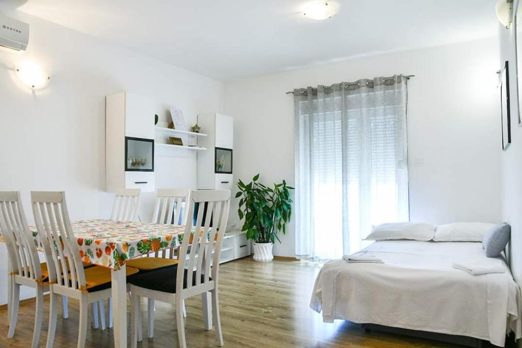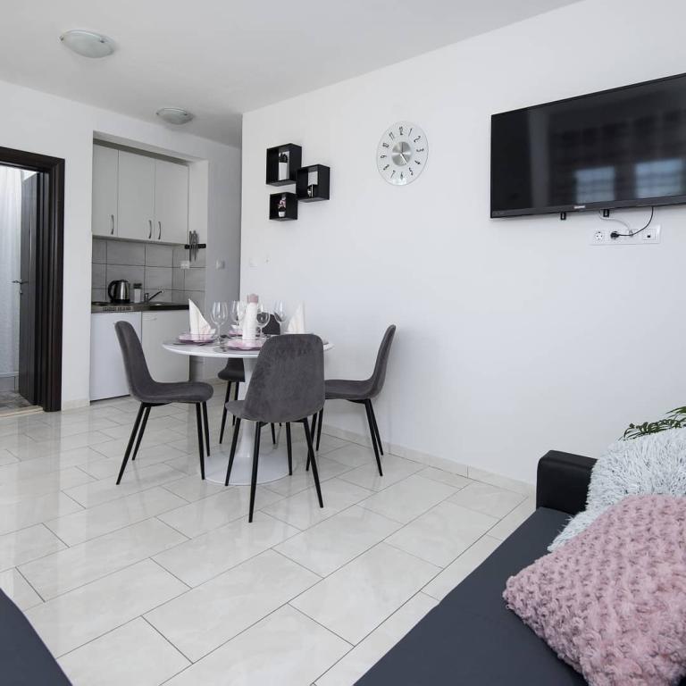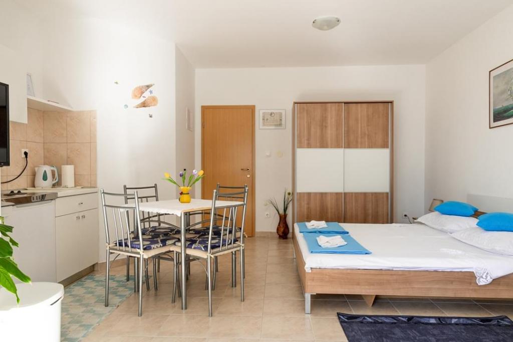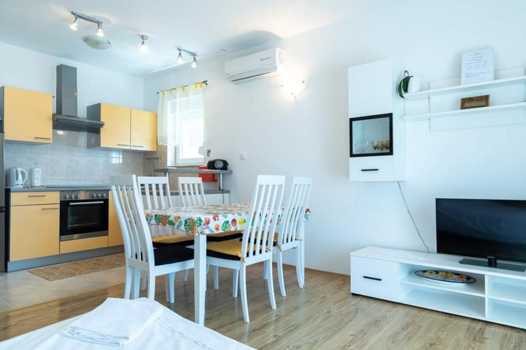 Appartements entièrement rénovés et climatisés avec vue sur la mer dans un lieu touristique calme. A proximité de divers services, commerces, bars, restaurants. Sur la plage de sable, ainsi que sur la mer limpide, diverses installations sportives et récréatives sont proposées. Nos clients bénéficient également de réductions sur certains restaurants, du rafting, des promenades en bateau dans le canyon de la rivière Cetina, des promenades en bateau vers l'île de Brac, du jet-ski, de la location de bateau et des promenades en banane et en tube pour les plus jeunes. Le prix comprend internet, SAT, parking privé et utilisation du barbecue extérieur.