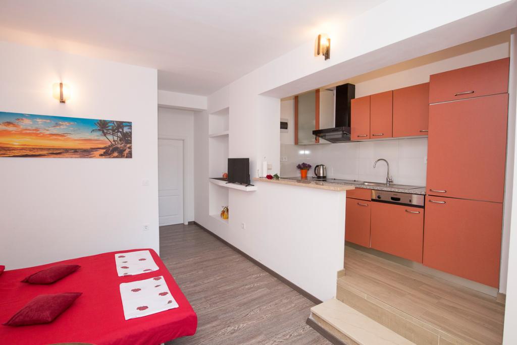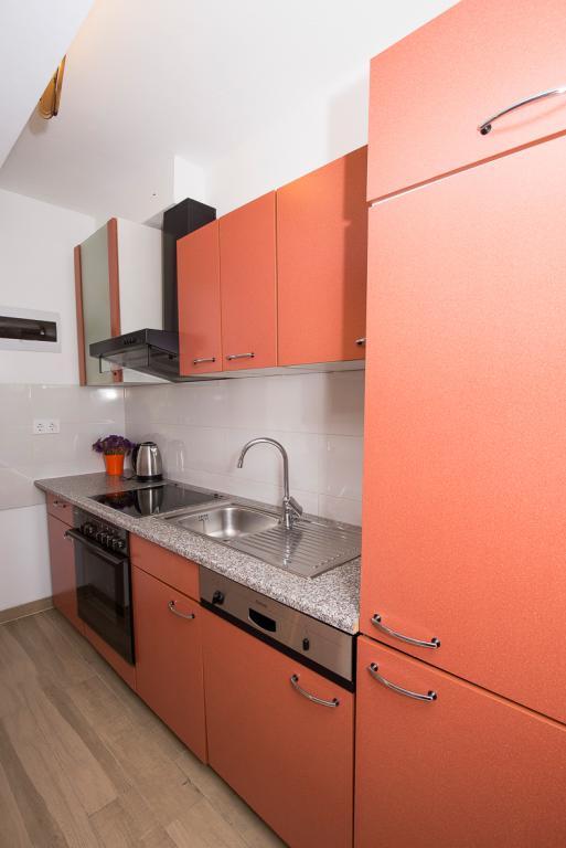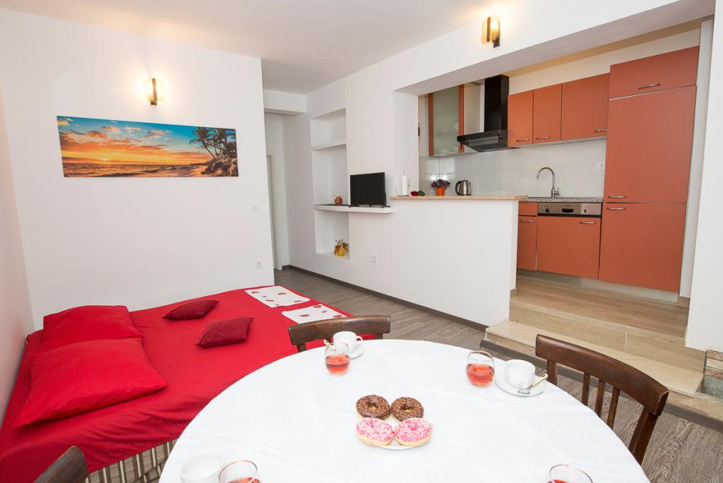 Vous disposez d'un parking dans la cour. L'établissement est situé en plein centre de Duće. Chaque appartement est climatisé et équipé du Wi-Fi. La plage de sable est à une minute à pied. Un grand parking est à votre disposition. La climatisation et la taxe de séjour sont incluses dans le prix. Un restaurant se trouve en face de l'établissement et un supermarché Konzum est situé sur votre droite. Les appartements sont joliment décorés et l'hôte est toujours à votre disposition.