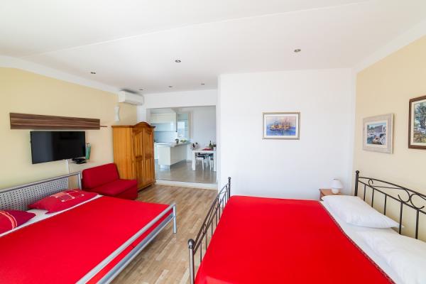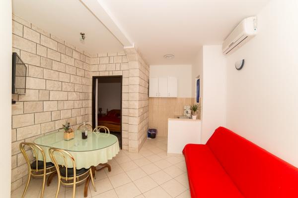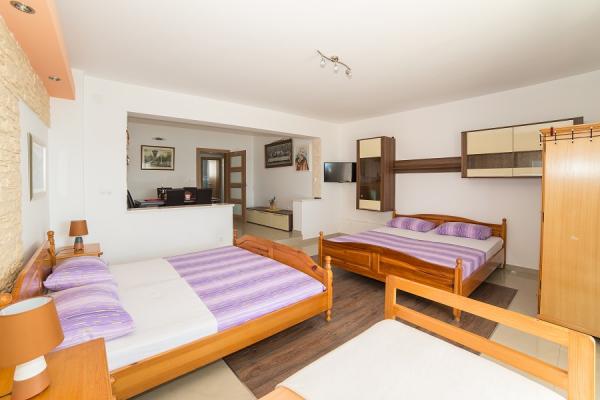 Appartements Nada sont placés juste à côté de la belle plage de sable fin, loin des routes et du bruit. Sur la plage, vous pouvez louer des scooters, bateaux à pédales, promenades en vedette rapide, voyages à l'île de Brac ...... Entrant dans l'appartement réservé à 14h et de même de 10 h (si vous arrivez plus tôt, bien sûr, vous aurez à votre toilettes de service, un parking ... toutes les choses nécessaires pendant que vous appartement est prêt.) Les réservations sont valables lorsque vous payez un dépôt qui est de 30% du montant total. L'établissement est situé à 5 minutes en voiture de cents Omiš.