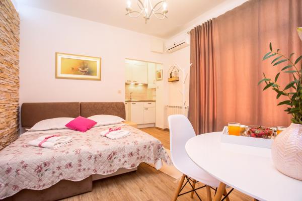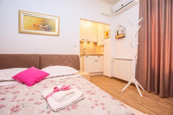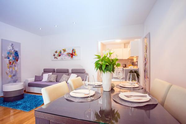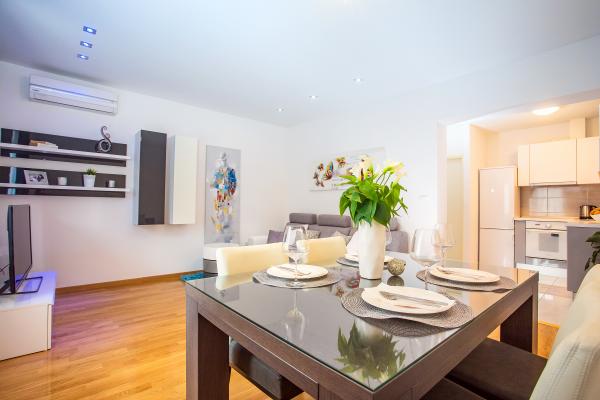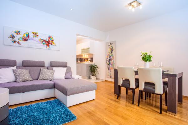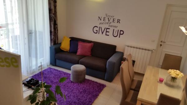 Nouvel appartement bien équipé dans le cadre paisible de Split. L'appartement est situé à 2 minutes à pied du centre-ville et à 5 minutes de la plage et situé à côté du centre sportif. L'appartement est situé dans une rue calme au premier étage d'une maison privée. Comprend: air conditionné; tv avec 900 programmes; Internet Wi-Fi; lave-vaisselle, lave-linge, et une cuisine entièrement équipée. L'appartement dispose d'une chambre avec lit double krevettom, salon avec canapé-lit, 1 salle de bains et un balcon avec table et chaises, et un garage pour la voiture. Doamćin est disponible pour toute aide et des conseils Coyne. Nous nous réjouissons à chaque arrivée.