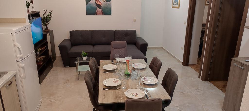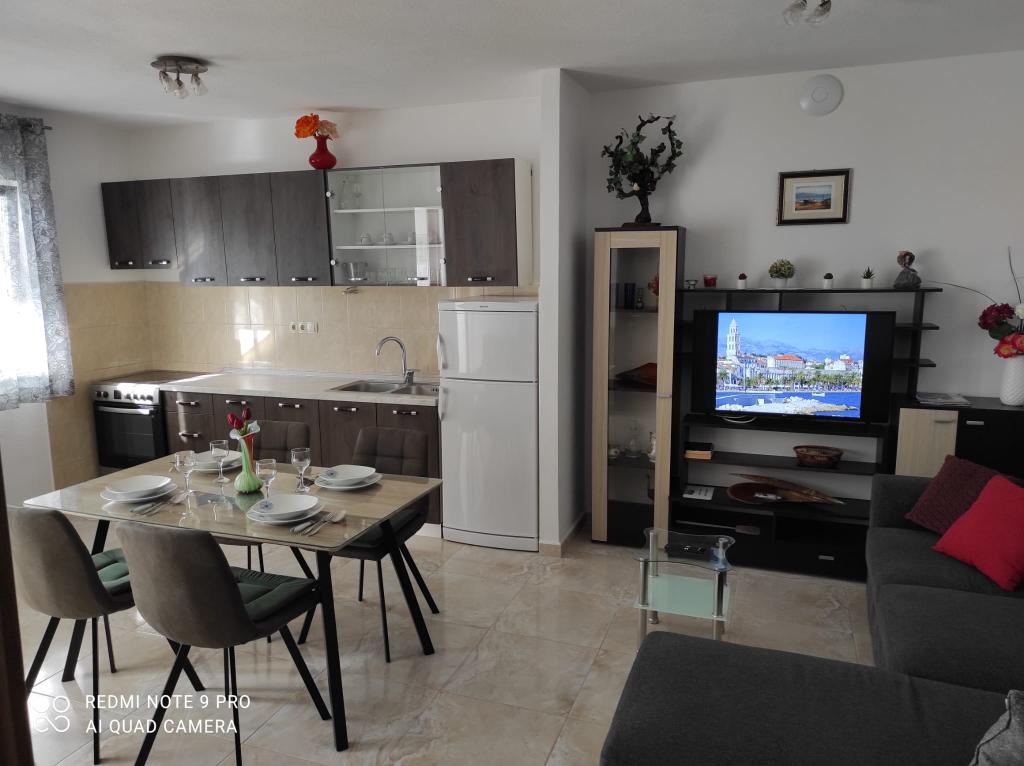 Les appartements Mušac sont situés à Dugi Rat - Duće, avec ses belles plages et beaucoup de soleil, à seulement 25 km de Split ou Makarska et à 5 km d'Omiš ! Le premier appartement pour 6 personnes est situé au premier étage (rez-de-chaussée) de la maison. Il se compose de deux grandes chambres, deux toilettes, séjour, cuisine et terrasse. Un grill est également disponible. Le deuxième appartement (neuf, construit en 2024 dans les combles) pour 7 personnes est situé au dernier étage de la maison familiale. Il se compose de trois pièces, un séjour, une cuisine, deux toilettes et un balcon. Les appartements se trouvent à 100 mètres de la plage. Depuis le balcon, vous avez une belle vue sur la mer Adriatique et l'île de Brač. Il y a deux places de parking devant la maison pour nos hôtes pour chaque appartement. Le ménage final et la taxe de séjour sont inclus dans le prix. En plein centre de Dugi Rat (à seulement 10 minutes à pied) se trouvent des supermarchés, des cafés, un bureau de poste, une boulangerie, une église, un bureau de change... À 5 km de Dugi Rat se trouve Omiš et à 20 km de Split. Omiš est connue pour la rivière Cetina (rafting, tyrolienne).