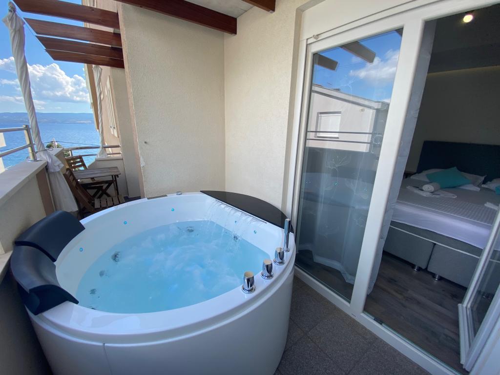 Des appartements luxueusement équipés dans un quartier calme, avec une baignoire d'hydromassage privée (jacuzzi), sont situés en première rangée de la mer. Il y a une plage de galets devant la maison et un café de plage à proximité. Un parking gratuit est disponible sur place.