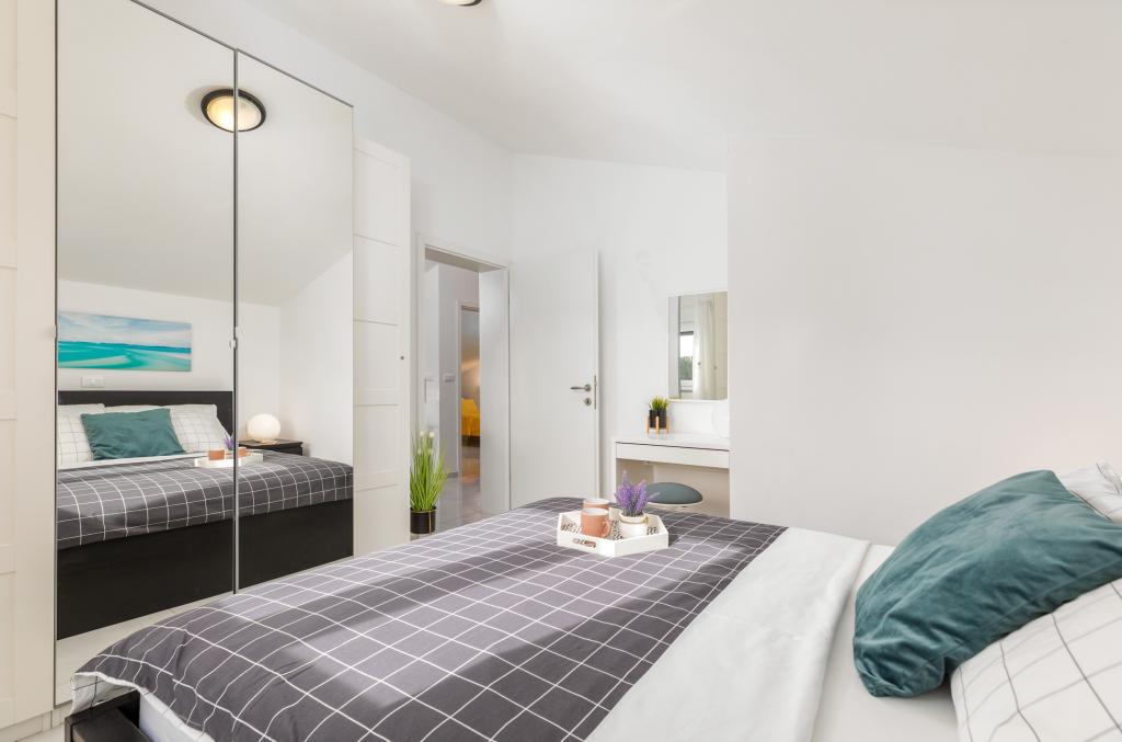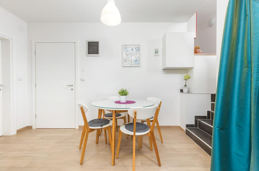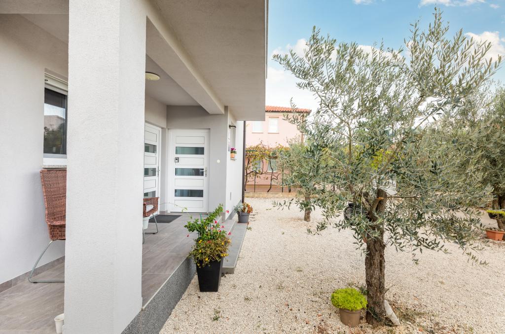 Appartement tout neuf et confortable dans une maison construite en 2017. Il est situé à seulement 10 minutes à pied de la plage et du centre-ville, dans un quartier verdoyant et calme de Fazana. Situé au premier étage d'une maison familiale, l'appartement offre une intimité totale et la possibilité de se détendre. Il a 45 mètres carrés, une chambre, un canapé-lit dans le salon pour deux personnes supplémentaires, un salon avec coin repas, une cuisine avec tous les appareils nécessaires, un grand balcon donnant sur la nature, une salle de bains. Le quartier est très calme, avec seulement quelques maisons familiales dans la région. Par contre, il n'est pas loin de la plage et du centre-ville. Le marché le plus proche est à 5 minutes à pied. Dans le centre, il y a de nombreux restaurants, cafés, magasins, boutiques de souvenirs, pharmacie, médecin, poste, banque, gare routière, guichets automatiques - tout ce dont vous avez besoin pour des vacances parfaites !