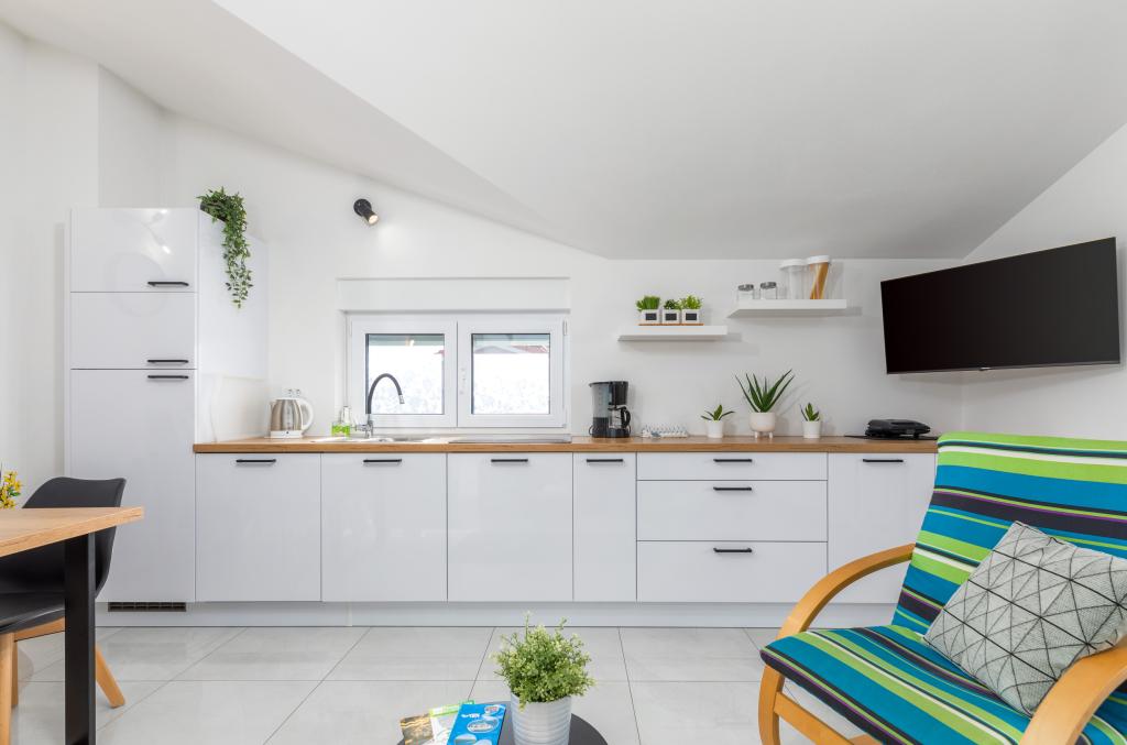 Appartement à un niveau élevé. Confortablement équipé. Nous ne manquions de rien. C'était très confortable à vivre. Le meilleur appartement en Croatie jusqu'à présent à un très bon prix. Nous recommandons et saluons de grands propriétaires.
