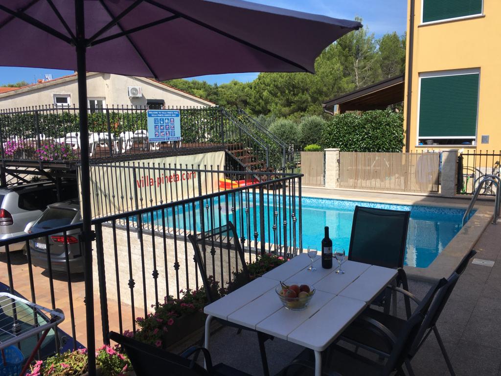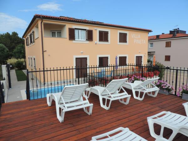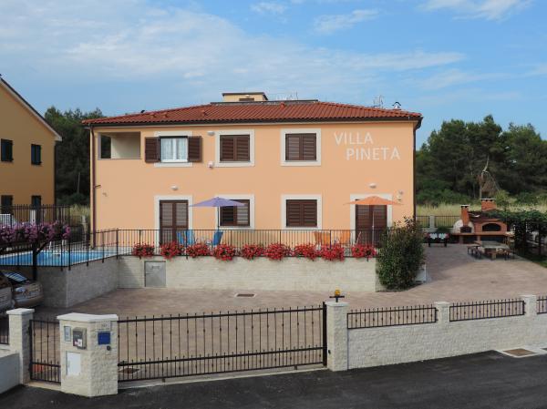 La Villa Pineta, située à Fažana, à proximité du parc national de Brijuni et du camp de Pineta, à seulement 650 mètres de la plage, propose des vacances inoubliables dans ses 5 suites modernes et confortables. La villa avec vue sur la mer offre détente, volupté et avantages d'une pinède à proximité, loisirs et vacances actives. Les appartements sont climatisés et dotés d'une connexion Internet gratuite et d'une télévision par satellite. Deux places de parking sont prévues pour chaque appartement. Le parking est également fermé sous la surveillance de caméras de sécurité.