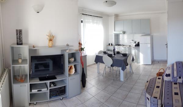 Nous avons passé une semaine à la fin de Juillet dans l'appartement 3 +1. La maison était très agréable, accueillant et attentionné, communiquer avec eux des problèmes. Même qu'ils nous sont venus pour vous avertir que certaines routes sont fermées vers la maison. L'appartement était très confortable et propre, nous ne manquons de rien. Les propriétaires ont aussi pensé aux petites choses comme sèche-linge ou Raid moustiques. La piscine était pour nous comme un avantage bienvenu particulièrement cool pour les courses du matin, le long de la plage. Je recommande vivement à tous.