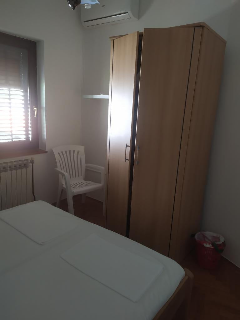 Fazana est une petite ville de pêche et touristique d'Istrie et est le port de départ du parc national de Brijuni. A Fazana, en plus de nombreux logements, il existe une autre petite maison familiale calme et coquette, à 80m de la mer, qui propose deux chambres. Le logement est situé dans une rue calme et est proche du centre de Fazana et de la plage. Tout ce dont vous avez besoin est à portée de main, vous pouvez donc marcher partout. Un maximum de 4 personnes sont acceptées, ainsi la paix et le repos sont garantis. Les animaux ne sont pas admis. Par l'entrée commune, vous accédez au premier étage où se trouvent les chambres. Chaque chambre a sa propre salle de bain (située à l'extérieur de la chambre). L'une a une grande terrasse et une vue sur la mer, tandis que l'autre chambre n'a pas de terrasse et donne sur la cour. Les chambres partagent un réfrigérateur commun et une cuisine extérieure qui peut être utilisée comme terrasse supplémentaire.