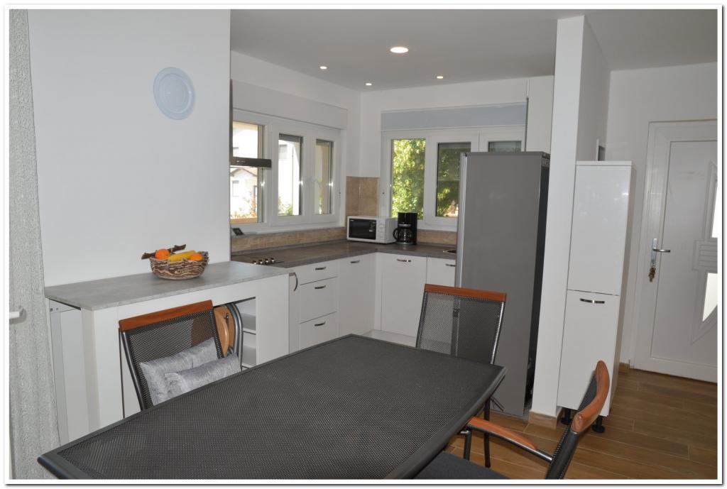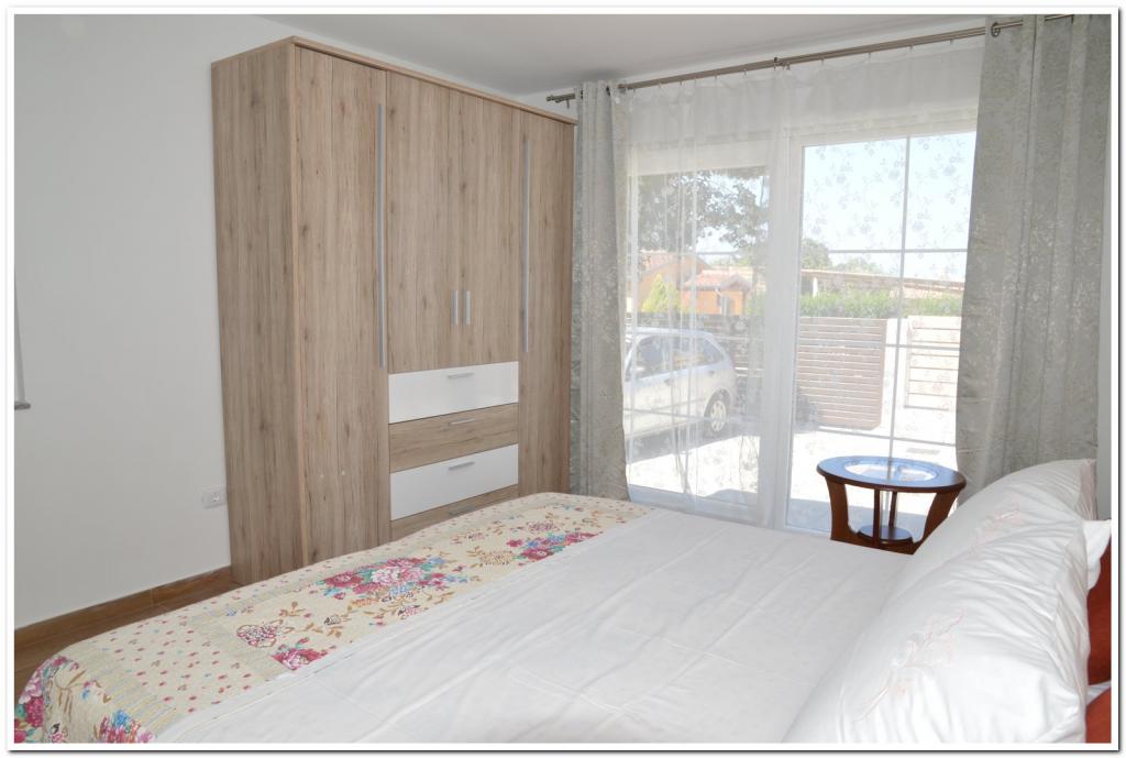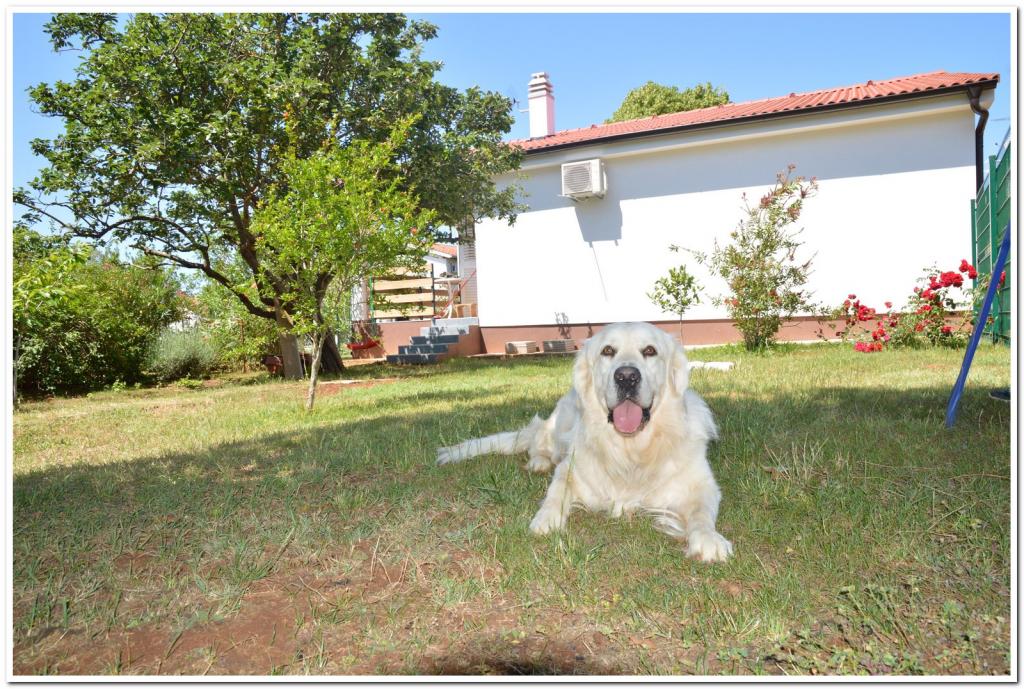 Deux belles maisonnettes séparées sur le même terrain. Entrées et parkings séparés. Les maisons sont séparées par une clôture. Leni (45m2, 1 chambre, 3 personnes). Elena 100m2, 2 chambres 4 personnes. Les deux avec terrasses couvertes et une cour de 500 m2, entrée privée et place de parking. Des vélos gratuits sont également disponibles. La cour est entièrement clôturée et les animaux sont les bienvenus et gratuits. Internet, climatisation et ventilateur de plafond, et le parking est dans la cour verrouillable. Les clients ont à leur disposition barbecue, chaises longues, jeux de société. Juste derrière les chalets se trouve une forêt, et la rue est une impasse sans circulation. Dans le quartier se trouvent les mêmes parcelles avec maisons / chalets (logements permanents ou temporaires.) Le magasin est à 800 m et peut être pédalé (la rue n'est pas très fréquentée), la plage est accessible en vélo ou en voiture. La plage est très longue avec beaucoup d'ombre et des aires de jeux pour enfants (plage de Puntižela, Valbandon, Bi Village) Il y a suffisamment de places de parking pour les voitures.