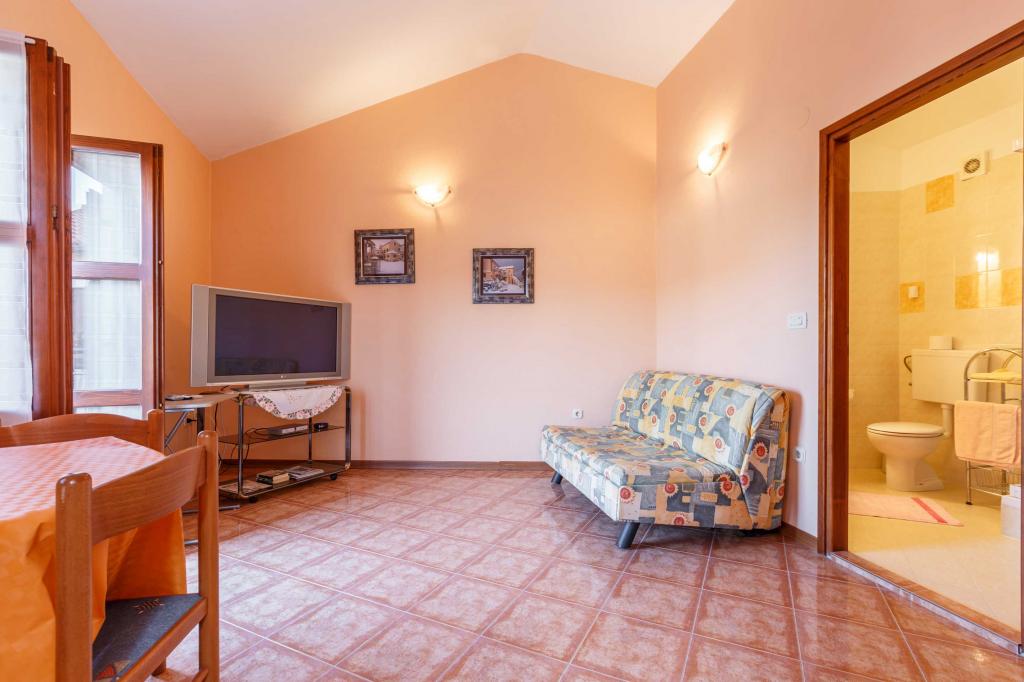 Au centre de la vieille ville de Funtana, une maison en pierre a été rénovée avec de petits appartements familiaux. Tous les appartements disposent de mini cuisines avec l'inventaire nécessaire (vaisselle, machine à café...=, salle d'eau avec WC (serviettes...), chambre (toute la literie nécessaire), salon (canapé pouvant être converti en un troisième lit, TV SAT, WIFI, climatisation) et une terrasse. La poste, la supérette, les restaurants et autres installations touristiques sont à seulement 100 m. La plage avec tous les équipements nécessaires est à 300 m de l'APP.