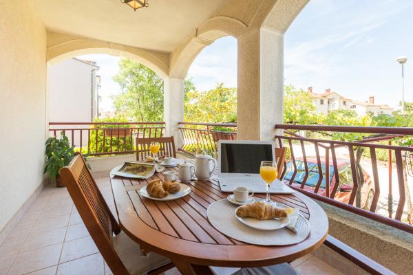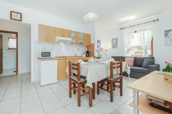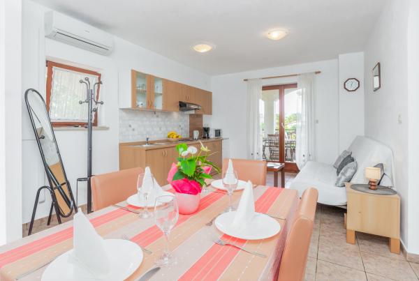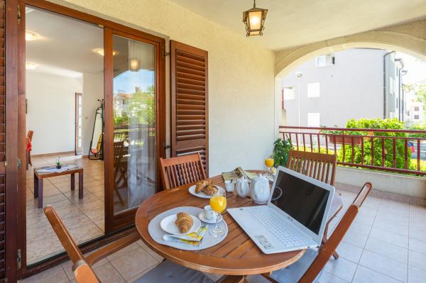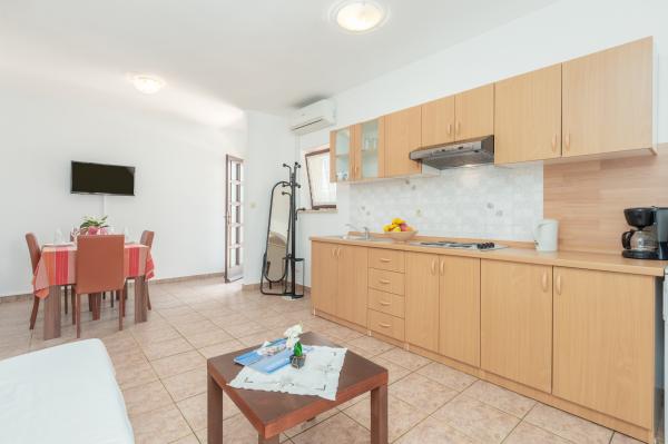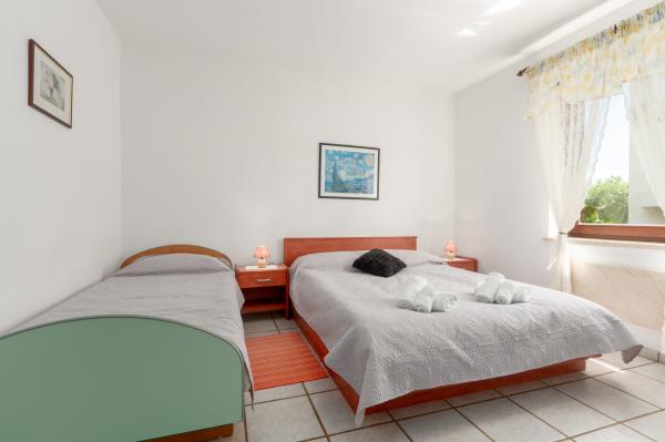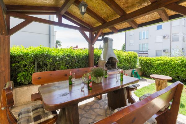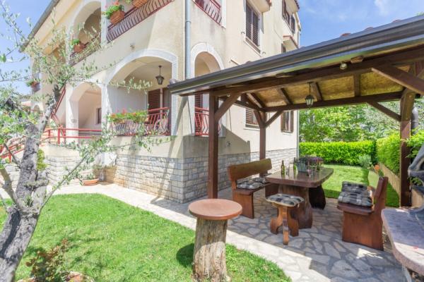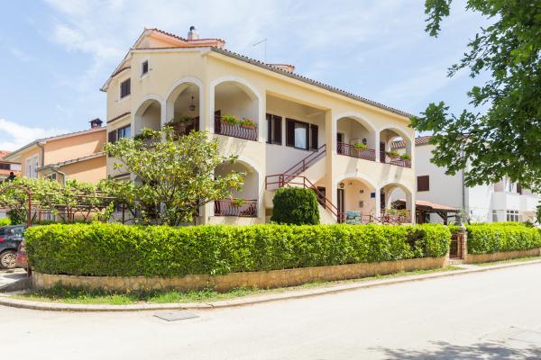 La maison est située dans un quartier résidentiel calme de Funtana. Deux appartements sont situés au rez-de-chaussée de la maison familiale et disposent d'une cour joliment aménagée avec barbecue et d'une véranda couverte avec salon de jardin en bois où les hôtes peuvent passer leur temps lorsqu'ils ne sont pas sur la plage. Les appartements sont meublés de façon moderne et se composent d'une chambre avec un lit double et un lit simple supplémentaire, d'un salon avec un canapé-lit pour une à deux personnes supplémentaires, d'une cuisine entièrement équipée avec four micro-ondes, réfrigérateur, cuisinière, machine à café et bouilloire. , salles de bains avec douche et lave-linge et terrasses couvertes avec salon de jardin. Le linge de lit est changé chaque semaine, les serviettes tous les trois jours ou selon les souhaits des clients. La climatisation et le WI-FI ainsi qu'une place de parking couverte sont inclus dans le prix.