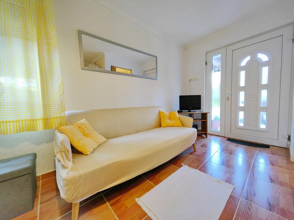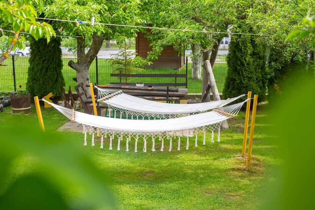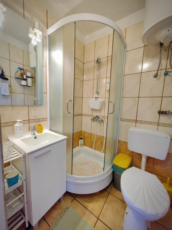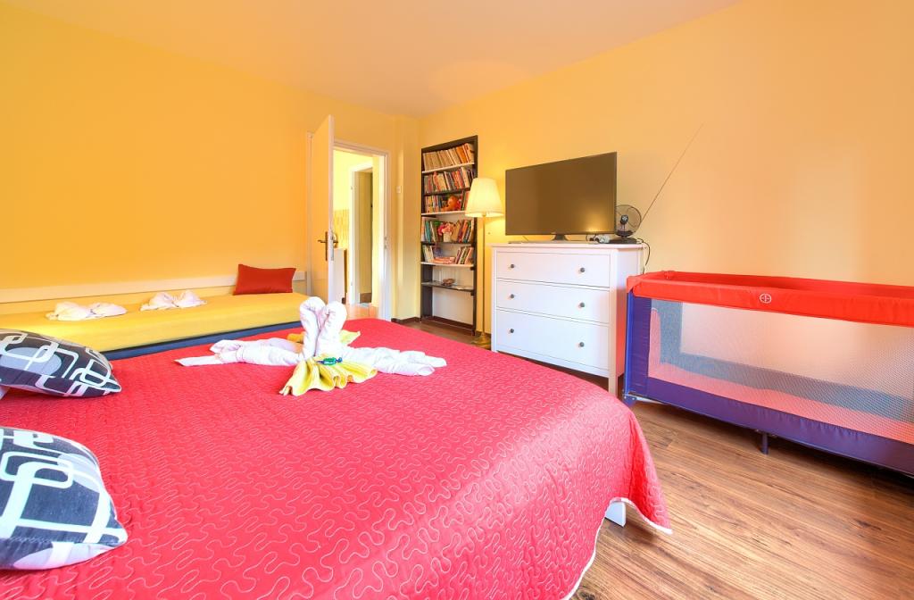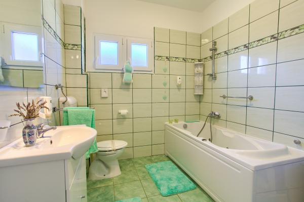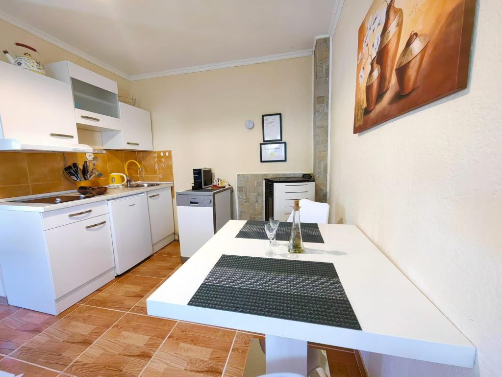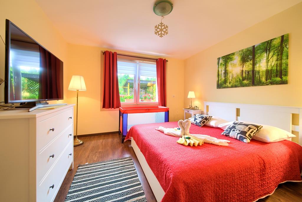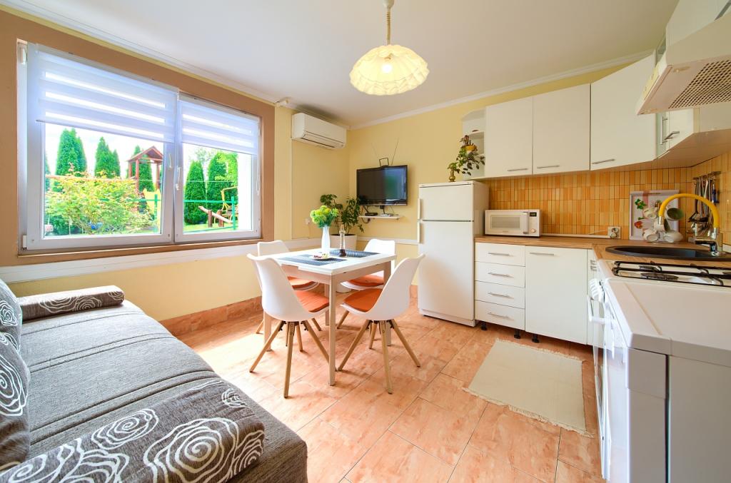 Taxe de sejour est inclus dans le prix.App. 2 2 est situé au rez-de-chaussée et occupe une superficie de 55 m2. Il se compose d'un couloir à l'entrée, d'une cuisine entièrement équipée que vous pouvez utiliser comme salon, chambre et salle de bain. Dans la chambre il y a un lit double et un lit supplémentaire. Le canapé de la cuisine / salle de séjour peut également servir de lit d'appoint pour deux personnes. La salle de bains spacieuse est équipée d'une douche et d'un lave-linge. App. 2 1 est situé au rez-de-chaussée de la maison avec entrée séparée comprenant une chambre à trois lits, une cuisine avec un salon où se trouve un canapé, un lit d'appoint et une salle de bains. Les clients ont à leur disposition un barbecue avec barbecue, vélos, mobilier de jardin, accès Internet gratuit, parking privé et un verre de bienvenue.