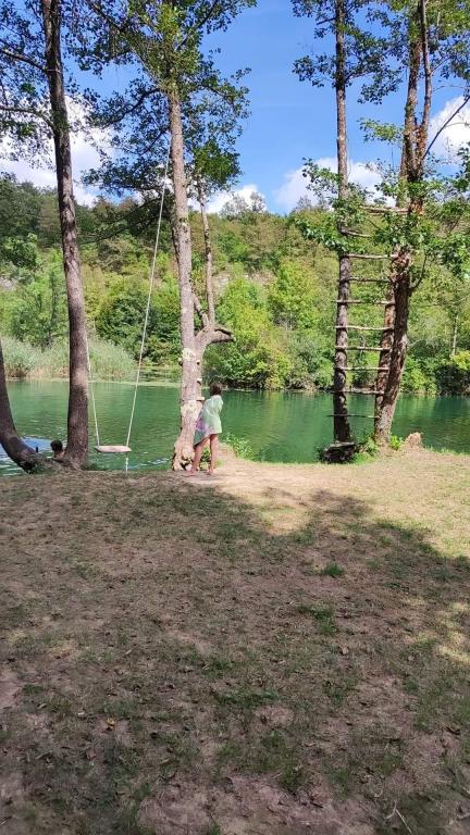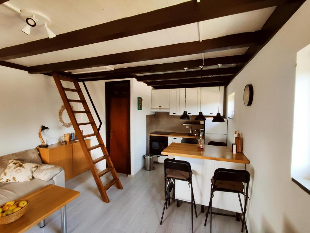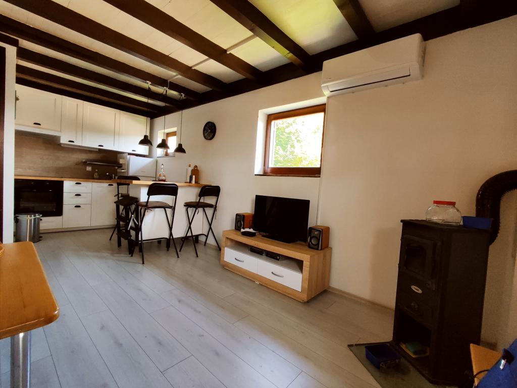 Une petite maison qui satisfera pleinement même les visiteurs les plus exigeants. Dans la maison, vous trouverez tout ce dont vous avez besoin pour un séjour sans soucis, et vous pourrez marcher jusqu'à la rivière et la belle cascade en quelques minutes (300m). La maison est située dans un endroit très calme. Il y a 2 magasins, un bureau de poste et un café au centre de la ville. La maison a une vue sur la rivière et la cascade. Étant donné qu'il s'agit d'un immeuble à deux étages, il est possible de louer un appartement adjacent (5 personnes). L'appartement au rez-de-chaussée se compose d'une cuisine (réfrigérateur avec congélateur, four et 4 plaques électriques, toute la vaisselle et ustensiles de cuisine nécessaires), séjour (canapé convertible, TV, ligne musicale, jeux de société, livres) et salle d'eau (wc, bidet), douche et lavabo). A l'étage, sous les combles, on trouve un lit double (160x200) et deux lits simples (90x200) et une petite terrasse avec vue sur la cascade. Il y a un barbecue dans la cour arrière. L'appartement est pour un maximum de 5 personnes + lit bébé, et le séjour minimum est de deux nuits. La maison est située dans un endroit très calme. Il y a deux magasins, un bureau de poste et un café au centre de la ville.
