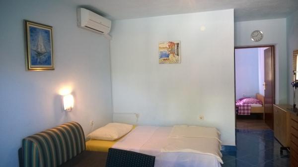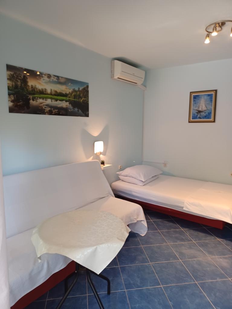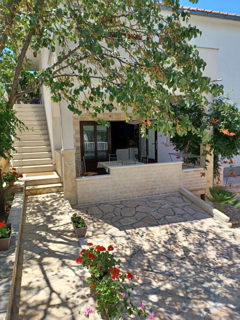 Maison récemment rénovée, deux appartements, cour paysagée, jardin, jardin verdoyant, place de parking dans la cour. La superficie de l'appartement est de 40 mètres carrés. M. terrasse a 20 mètres carrés Chaque appartement a une entrée séparée et une terrasse couverte séparée donnant sur la mer, Velebit, jardin et rue, Appartement bleu: séjour, chambre. cuisine au séjour, salle d'eau avec wc. Séjour: lit double, plus lit supplémentaire. Cuisine, - entièrement équipée. Chambre, - a deux lits simples Dunja: salon, - lit double, plus lit supplémentaire; Cuisine, - séparée par un écran entièrement équipé; Chambre, - lit double pour deux personnes. Les deux appartements disposent d'une douche extérieure séparée et d'un barbecue commun, de la climatisation et d'une connexion Internet illimitée dans le cadre du prix.