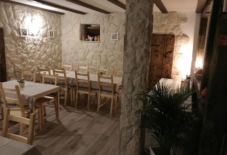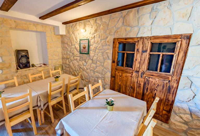 De l'offre de plats autochtones, en essayant de les arracher à l'oubli, nous distinguons: pain cuit au four, prosciutto et saucisses Lika faits maison, craquelins, bacon, fromages autochtones Lika Škripavac et Basa, haricots à la viande séchée, sarma, boudin au chou ou pommes de terre bouillies, chou à la viande fumée, divers ragoûts, veau et porc au four, agneau grillé, pôle Lika au bacon, salades aux légumes cultivés localement, Uštipci de Lika, noix, strudel au fromage et pommes locales, pomme et sureau biologiques jus, miel maison... .