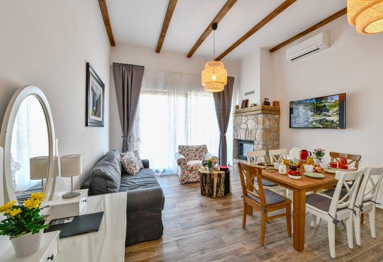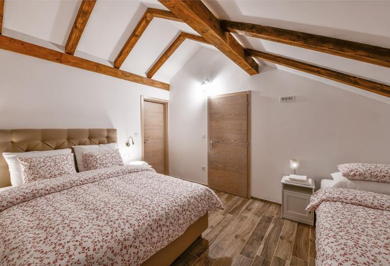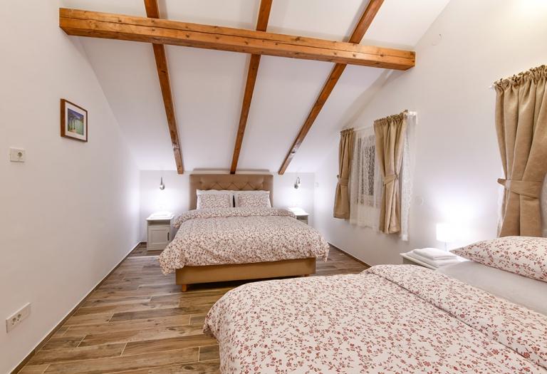 Dans une nature intacte, presque en plein cœur de Lika, dans trois "vieilles" maisons Lika, chacune ayant sa propre histoire, nous proposons des éléments d'ameublement traditionnels avec une touche d'histoire et d'antiquité, mais aussi de luxe et de confort, si nécessaire aujourd'hui pour se reposer et échapper à la vie quotidienne trépidante. L'équipement des installations elles-mêmes est quelque chose dont nous sommes extrêmement fiers et contient tout le nécessaire pour rendre les vacances complètes et inoubliables. Ici, nous entendons avant tout une cave à vin, une taverne où l'on prépare des repas pour les hôtes, une piscine couverte, couverte et chauffée, un sauna, le chauffage central, un van pour les transferts, la possibilité de louer des véhicules tout-terrain, votre parking couvert privatif, un parc pour enfants, des meubles de jardin, mais aussi un téléviseur, internet, des climatiseurs, des lave-linge et des sèche-linge, des lave-vaisselle, un grill, un four à air chaud, des sèche-cheveux, ainsi qu'une source d'eau potable qui remonte à à l'époque de la monarchie austro-hongroise