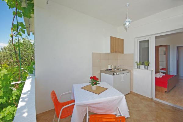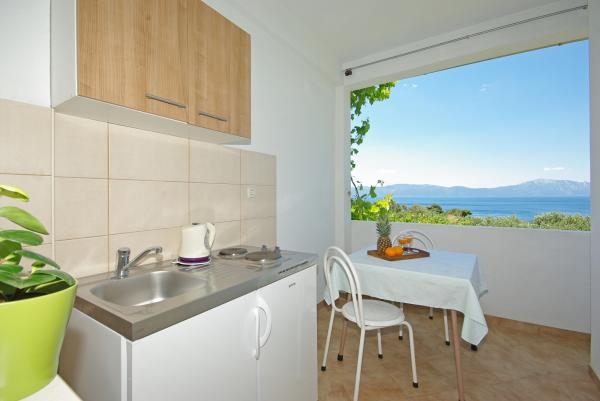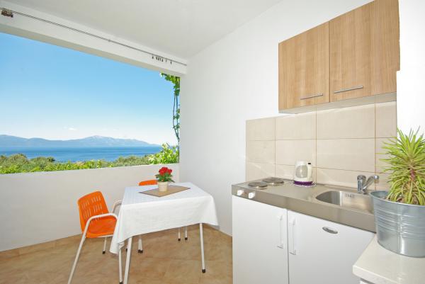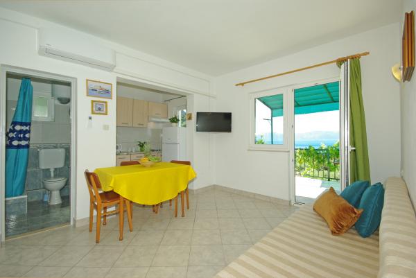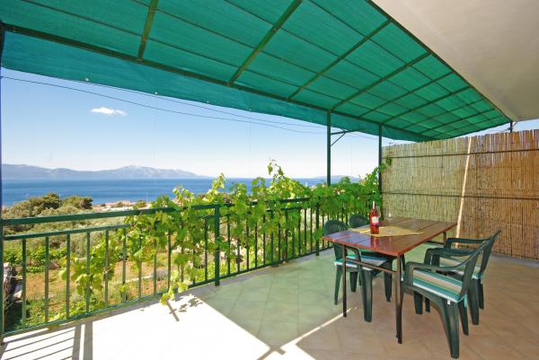 La maison est située dans la campagne et d'oliviers, dans un environnement calme, à environ 500 mètres ou 15 mètres de la mer. La maison a une belle vue sur la mer et la pente de la montagne.