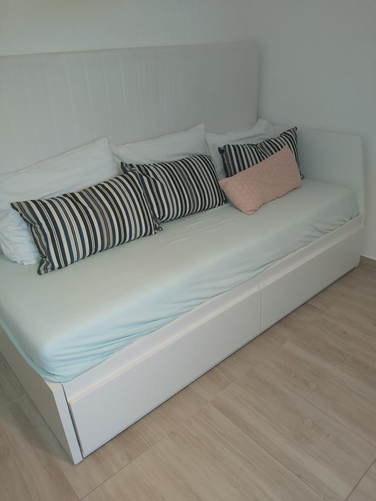 Bel appartement, deux chambres plus salon, deux salles de bain très pratique quand on vient avec des enfants. La chambre principale est spacieuse avec sa propre salle de bain dans la chambre, la machine à laver est utile. Le balcon est immense avec vue sur la mer. toutes les chambres sont climatisées, permettant une intimité. La plage est proche ainsi qu'un supermarché. Le parking est dans la cour, très pratique et sécurisé.
