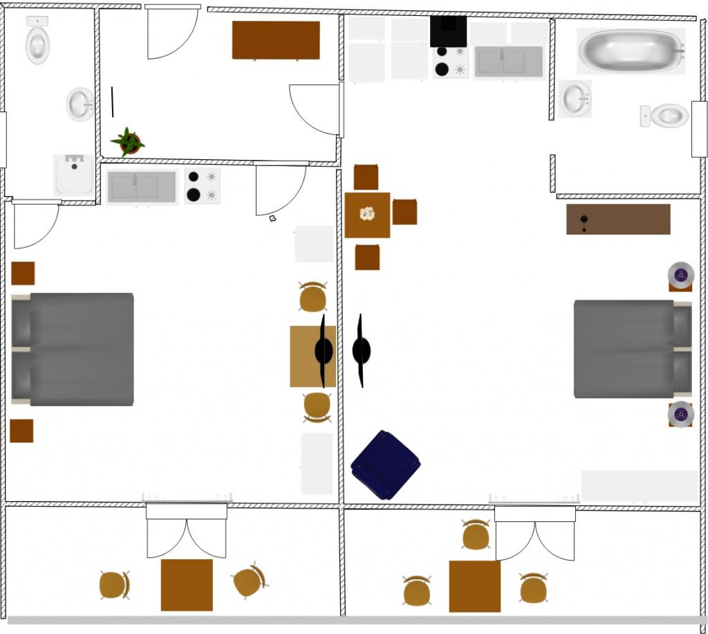 Les appartements se situent dans une maison de six appartements au total. La propriété se trouve à 150 mètres de la plage et dispose d'un parking privé. Chaque appartement possède un balcon couvert de 8 ou 16 mètres carrés et est climatisé. Seuls les clients ayant réservé un appartement sont autorisés à y séjourner.