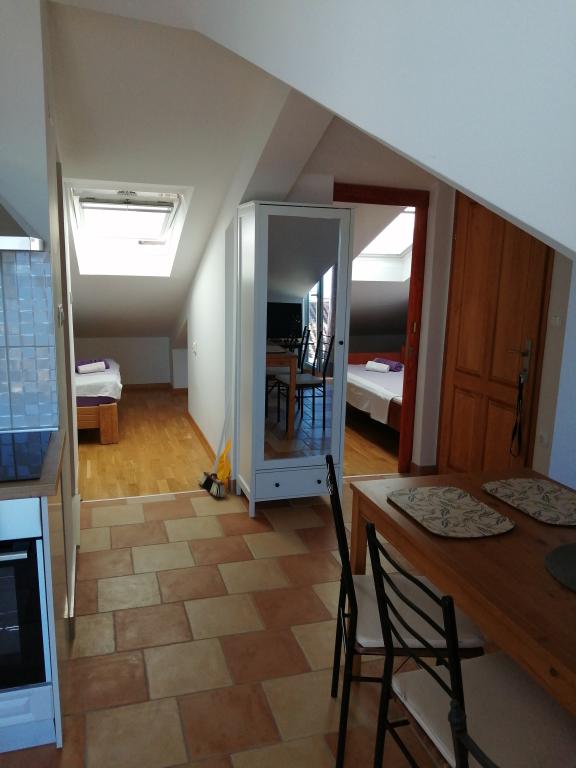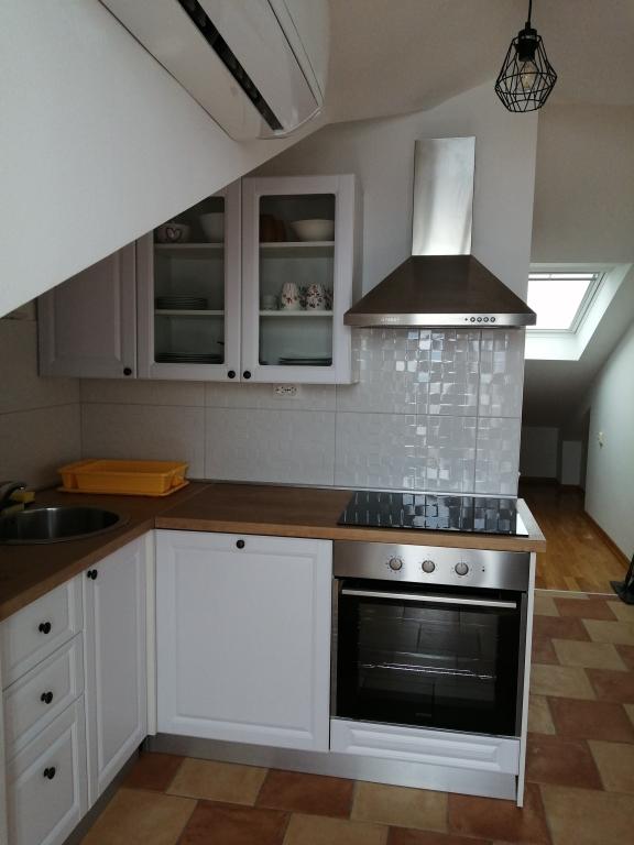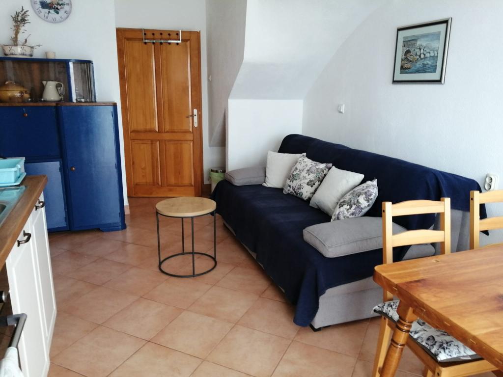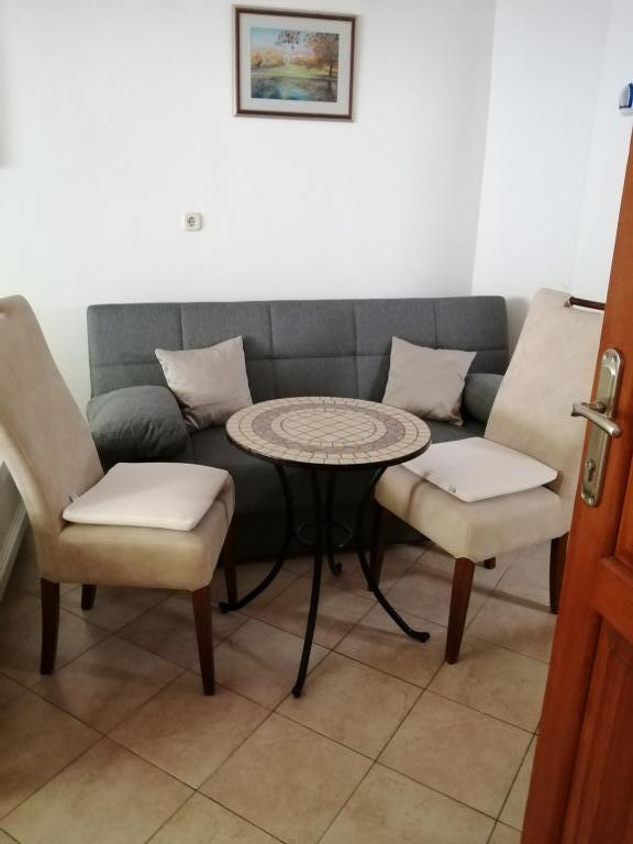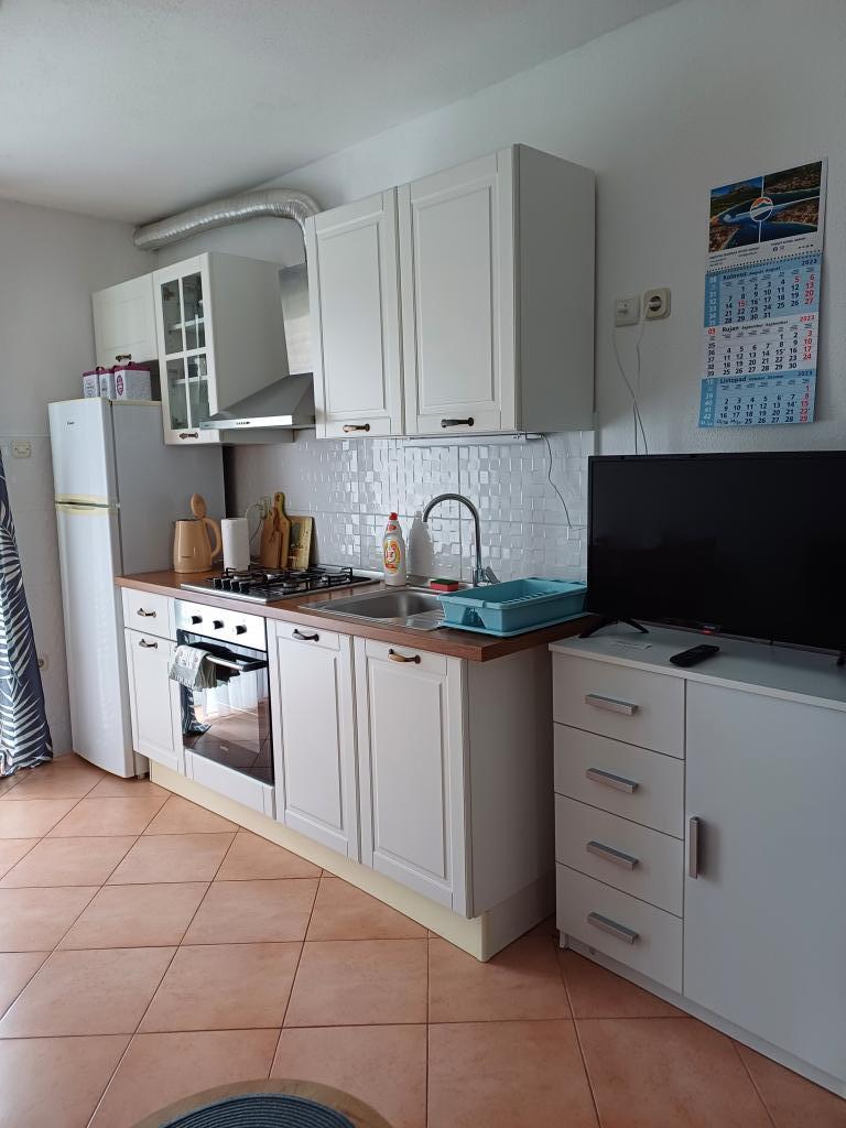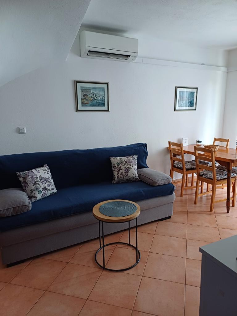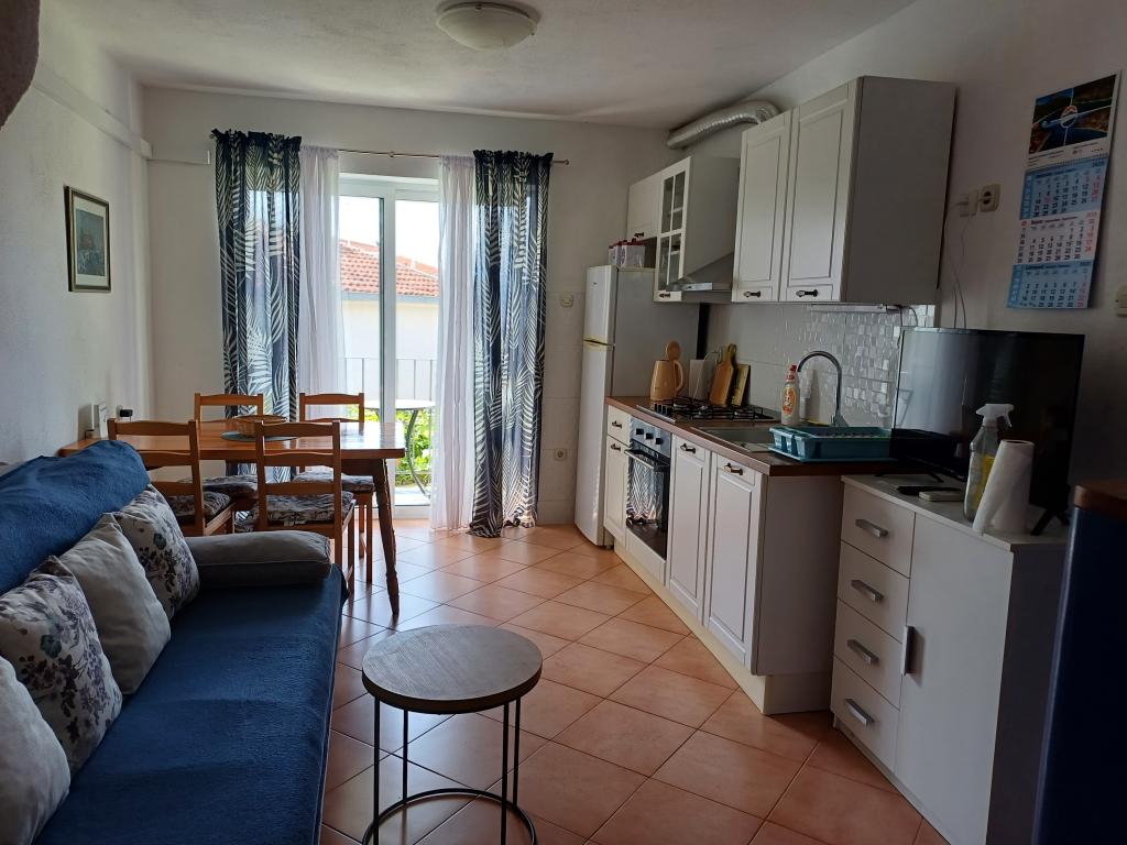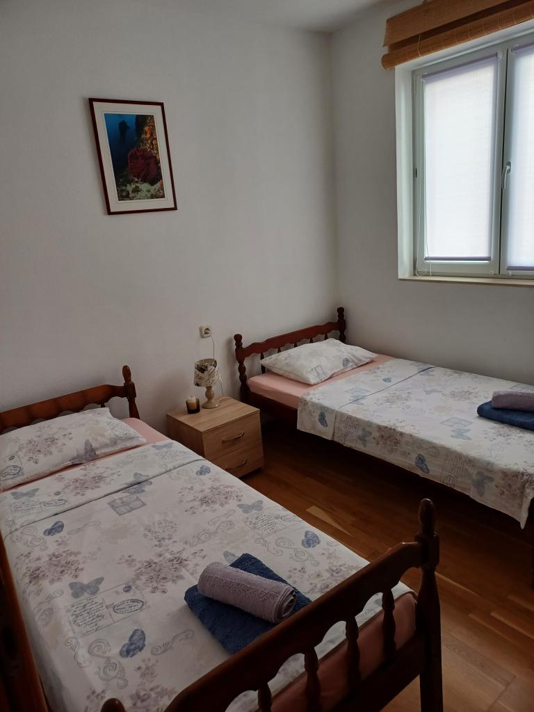 Appartement Lina est un appartement entièrement équipé dans un endroit calme près du centre. Il se trouve à 3 minutes à pied de la plage et à la même distance du centre. Il est situé au premier étage d'une maison privée et comprend un salon relié à la cuisine, une chambre avec un lit double et une chambre avec 2 lits simples et une salle de bain. Il possède également un balcon avec vue sur la mer. Il est équipé de tous les appareils électroménagers de base (réfrigérateur, four, cuisinière) et comprend la climatisation ainsi qu'une télévision et un canapé-lit dans le salon. Le prix comprend une place de parking à 200 m de l'appartement, mais à votre arrivée, dans le but de décharger vos bagages, vous pouvez conduire une voiture à 30 m de l'appartement. L'hôte est situé au même endroit et à l'arrivée accueillera les invités et leur montrera l'appartement et le parking et remettra les clés.