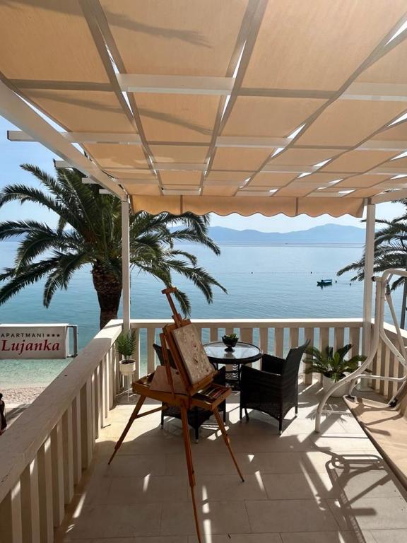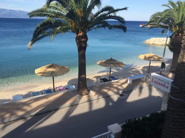 Nous recommandons un appartement confortable, Lujanka avec chaleur pour tout le monde. Pour la troisième fois, nous passons les vacances d'été ici et si nous avons la chance de revenir l'année prochaine. Un hébergement génial et inoubliable! Nos chers hôtes, serviables et attentifs veillent au confort de nos hôtes et disposent de chaises longues confortables sur la plage. Ils fournissent continuellement des serviettes et des draps parfumés frais. De la terrasse, vous avez une vue magnifique sur la mer. L'ombre des palmiers est agréable à rafraîchir et bénéficie d'une situation centrale absolue. Il y a des magasins, des boulangeries, des restaurants de bureau de poste, des cafés et à côté dans la rue piétonne.Au cours des 20 dernières années, nous avons passé beaucoup de vacances dans l'Adriatique, mais cet endroit et notre hébergement sont devenus nos préférés! C'est l'endroit le plus pratique et le plus pratique pour détendre la fatigue annuelle. Nous le recommandons à tous!