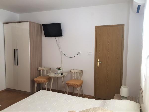 Belle hébergement dans une villa avec des appartements meublés et vue mer imprenable. Les appartements sont propres, entièrement équipés, draps et serviettes sont changés régulièrement. Il ya la télévision, de la climatisation, wi-fi. La cuisine est entièrement équipée, donc pas de problème pour faire cuire quelque chose, ou aller à des restaurants à proximité. Sur la plage sont disponibles pour chacun des chaises longues. Les plages sont de galets, propre, avec des douches. La belle mer claire. Qui ne veut pas être toute la journée au soleil, peut être utilisé pour l'ombre de la terrasse où des chaises longues. Les propriétaires de villas appartements sont agréables, serviable, prévenant, gentil mais seulement des gens sympas. Le logement n'est pas une erreur, je suggère à tous chaleureusement. Nous y allons chaque année près de 5 ans. Chaque année, notre surprise et notre développement futur. Nous avons toujours été satisfaits. Qui veut passer des vacances dans un cadre magnifique, c'est pour eux. Gradac est belle petite ville avec une promenade le long de la mer, où il ya des restaurants, pâtisseries et sur tout ce que vous pouvez penser.