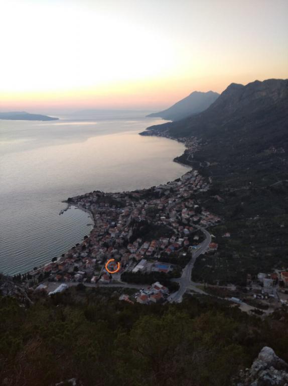 Les appartements Pogled sont situés à Gradac, un endroit à mi-chemin entre Split et Dubrovnik. La maison est entourée de verdure et de fleurs, tandis que le grand balcon offre une belle vue sur la mer et la ville.