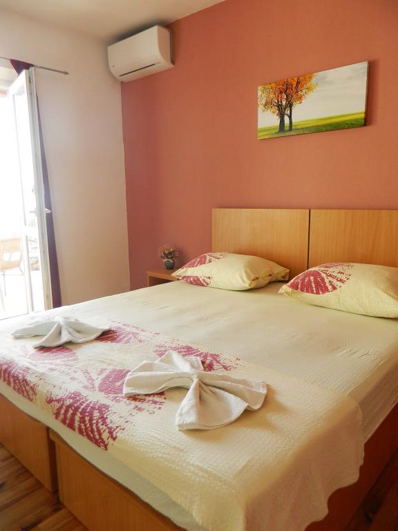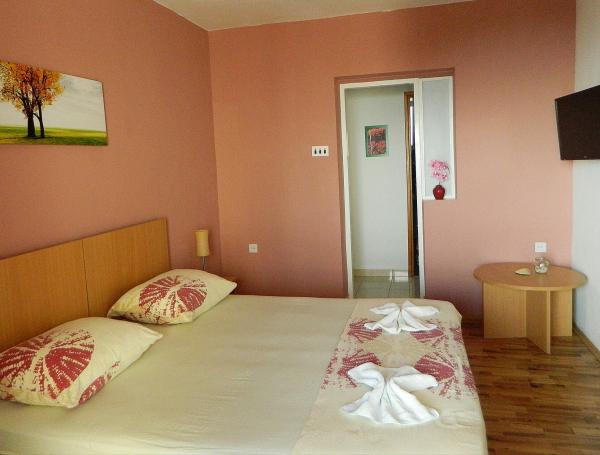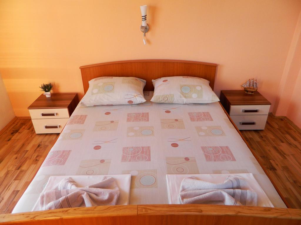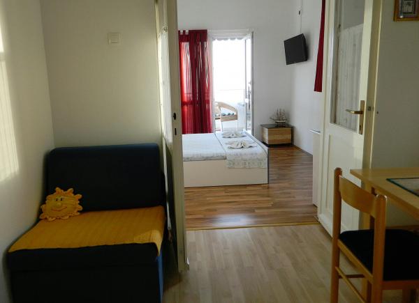 Unités d'hébergementLa climatisation est incluse dans le prix. Les prix se réfèrent à deux personnes et un supplément est payé pour la troisième personne. Les prix se réfèrent à un minimum de trois nuits, et pour une et deux nuits, le prix est majoré de 20 %. Les services de blanchisserie peuvent être utilisés une fois tous les 7 jours et sont facturés 7 € par lavage. Après avoir effectué la réservation, le client paie un acompte d'un montant de 20 %. Le reste est payé à l'arrivée. L'heure de départ est à 10h00. Le client peut entrer dans l'appartement à 13h00.