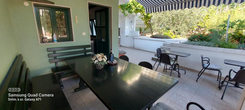 La maison se trouve dans une baie calme, au premier rang de la mer, à proximité d'installations sportives et de loisirs (terrain de tennis, mini golf, parc aquatique, location de scooters des mers, pédalos, vélos). Il est entouré d'un jardin avec des vignes, des kiwis, des olives et des citrons, des fleurs et des herbes qui sont à la disposition des clients. Dans le jardin il y a une terrasse avec une pergola, 50 m2, un barbecue et une douche extérieure. Au même étage, il y a 3 chambres avec salles de bain privées, climatiseurs, terrasses, réfrigérateurs et coffres-forts (2 doubles et 1 triple. Nous pouvons ajouter un lit supplémentaire). Dans la cour de la maison, il y a une cuisine entièrement équipée avec deux grands réfrigérateurs, un congélateur, une cuisinière avec un four, un four à micro-ondes, 2 bouilloires, un grille-pain, une cafetière à filtre et d'autres accessoires nécessaires. Il y a un parking ouvert devant la maison, et nous avons aussi notre propre parking à l'ombre, qui est fermé et couvert. Les animaux domestiques sont autorisés.