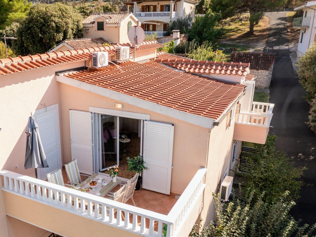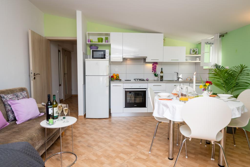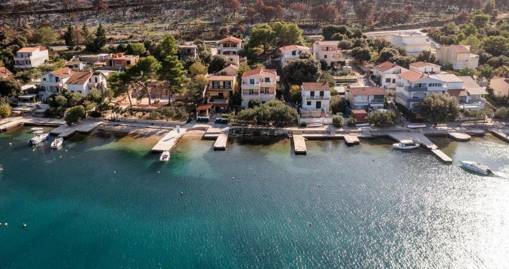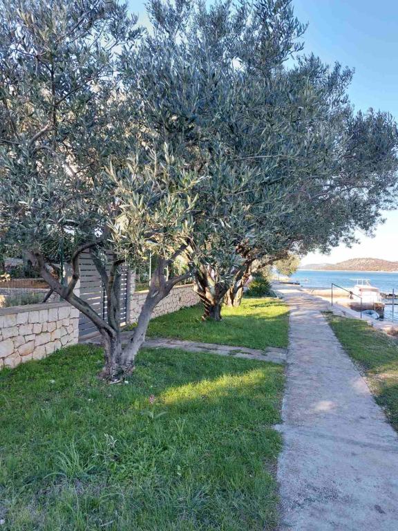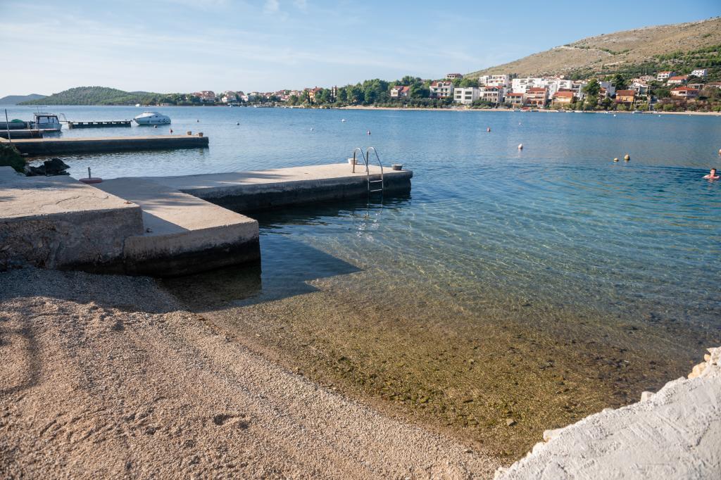 La propriété est située en première ligne de mer, sous la colline de Jelinjak, au sud d'une longue et magnifique baie entre les villages de Grebaštica et Šparadići. Ces villages sont reliés par la route principale et par un sentier bien entretenu longeant la mer, propice à la marche, au jogging et au vélo. La propriété est récente. L'appartement dispose d'une terrasse avec vue sur la mer et le village de Grebaštica. La plage est en béton et en galets, avec des espaces à l'ombre des oliviers.