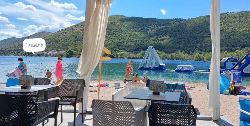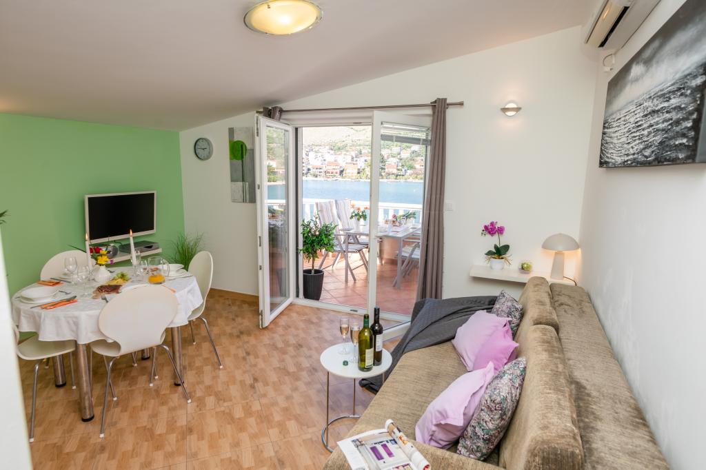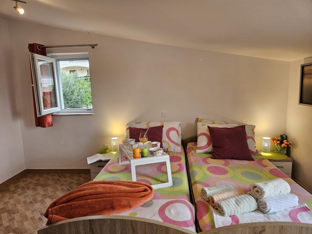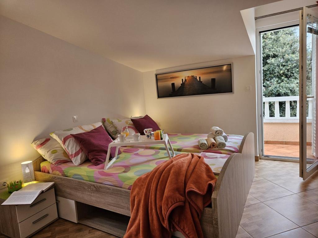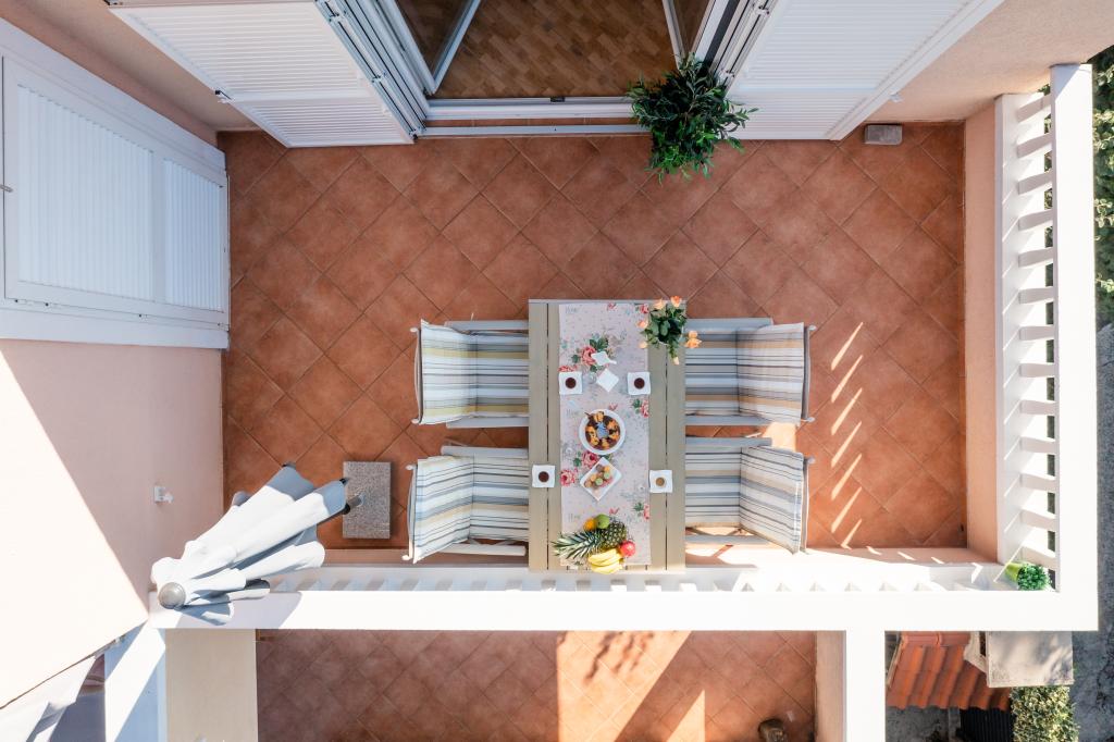 La propriété est située en première ligne de mer, sous la colline de Jelinjak, au sud d'une longue et magnifique baie entre les villages de Grebaštica et Šparadići. Ces villages sont reliés par la route principale et par un sentier bien entretenu longeant la mer, propice à la marche, au jogging et au vélo. La propriété est récente. L'appartement dispose d'une terrasse avec vue sur la mer et le village de Grebaštica. La plage est en béton et en galets, avec des espaces à l'ombre des oliviers.