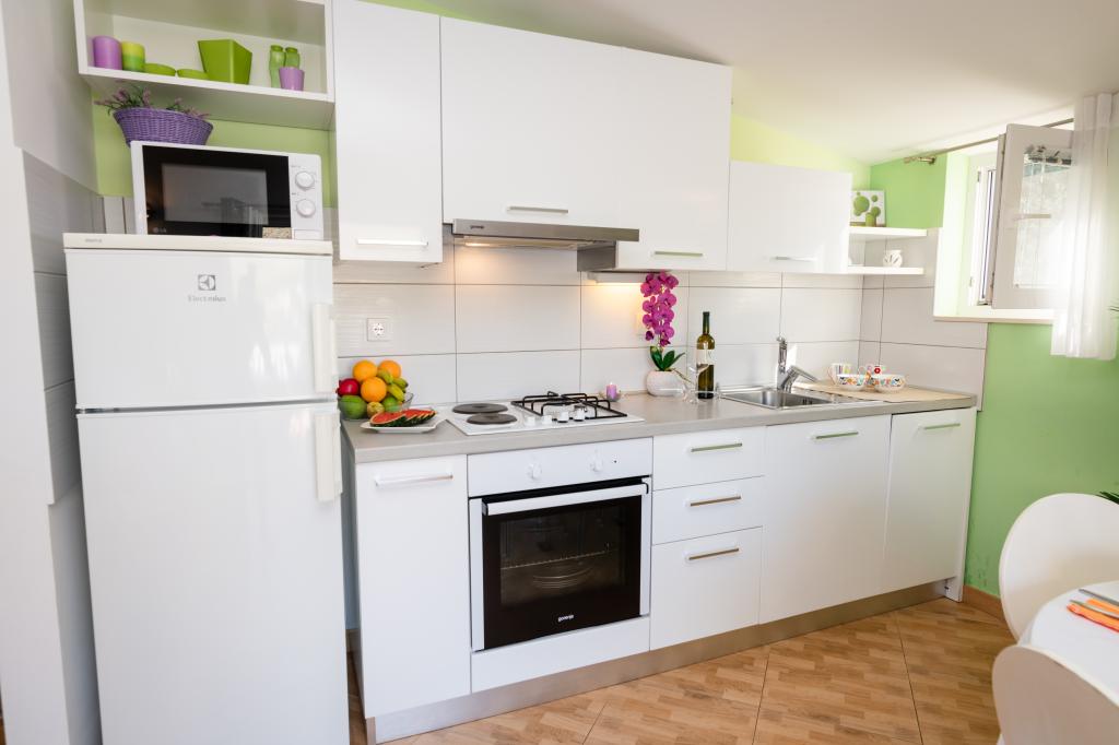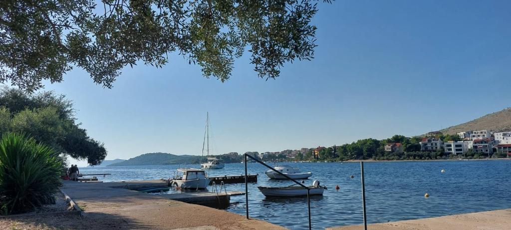 Taxe de sejour n'est pas incluse dans le prix.Les locataires de l'appartement disposent d'un lave-vaisselle et d'un lave-linge. Un amarrage pour bateau, un emplacement pour remorque et un parking pour voiture sont disponibles gratuitement. Un lit bébé, des parasols et des chaises longues sont à disposition. Un espace barbecue est disponible dans la cour de la maison. L'appartement dispose d'une connexion Wi-Fi gratuite. Grâce à son éloignement de la route principale, les locataires n'ont pas à se soucier de la sécurité de leurs enfants. Le matin, il est possible d'acheter des produits alimentaires de base à proximité immédiate de l'appartement en bus. La vue sur l'archipel depuis le sommet de la colline de Jelinjak, accessible en voiture ou à vélo, est un atout majeur. Deux parcs nationaux se trouvent également à proximité : Krka et Kornati. Bienvenue !