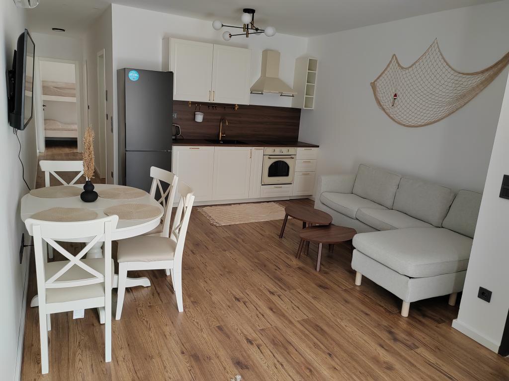 Appartement entièrement meublé dans un immeuble neuf à seulement 20 m de la plage. Nous sommes situés à 5 minutes à pied du centre. A proximité des commerces, restaurants et cafés. Sur la plage, un bar de plage avec transats, ombre naturelle et parc aquatique. Le bâtiment dispose de son propre parking juste devant la terrasse.