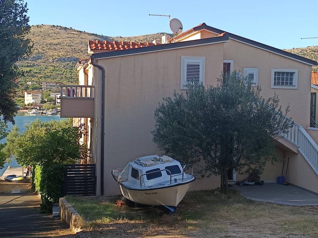 Le logement se situe en bord de mer, dans la partie nord de la colline Jelinjak couverte de forêts de pins dense et sous la route touristique de l'Adriatique sur le côté sud de long belle baie où les établissements sont situés Grebaštica et Sparadici. Il s'agit d'un bâtiment nouvellement construit, qui se compose de trois étages et un rez de chaussée utilisé par le propriétaire de l'appartement et le premier étage avec deux appartements et deuxième étages avec un appartement .. Tous les appartements, en particulier celui sur le deuxième étage qui est moderne meublé et équipé, balcon avec une belle vue sur la mer et la plus grande partie du village Grebaštica condition qu'il y ait une terrasse au premier étage, le plus grand, qui s'étend d'un côté à un autre objet. En cas de disponibilité de seulement terrasse de un appartement peut être utilisé comme une seule entité, alors que dans le cas de la disponibilité de deux appartements terrasse séparé en diagonale haut écran qui offre une bonne intimité visuelle de chaque utilisateur de l'appartement. La plage est un béton gravier avec des zones d'ombre sous les arbres.