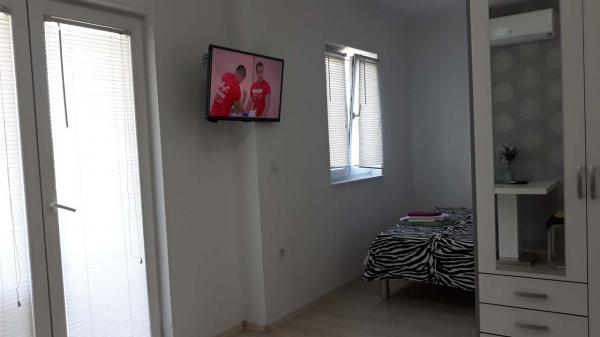 Appartement joliment meublé, situé dans un endroit calme qui convient à tous ceux qui veulent un bon repos. Il est situé sous la route principale et il n'y a pas de bruit, la paix, calme et l'air frais de la mer. La dame qui nous a reçu était très serviable et accueillant et nous avons que des éloges.