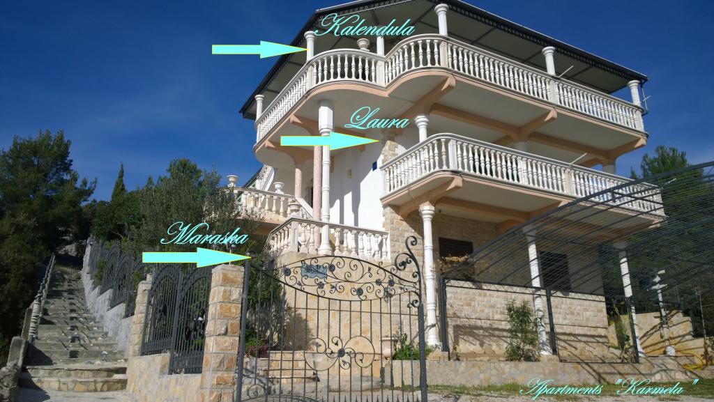 Bienvenue aux Appartements Karmela! La maison est située dans un quartier calme de Grebaštica, entourée de jardins méditerranéens, tandis que de l'autre côté de la baie se trouve une dense forêt de pins - un endroit idéal pour échapper à l'agitation de la ville. Dans chacun de nos trois appartements, vous pourrez passer des vacances reposantes avec vos familles, vos enfants et vos amis. La mer cristalline est à seulement 30 m, tandis que les plages de galets locales sont à 100 à 300 m de la maison. Grebaštica, en plus de ses attractions (mur défensif Bedem, église Saint-Pierre et Marie, source de Kanel), a une très bonne position géographique, donc pendant votre séjour, vous avez la possibilité de visiter de nombreuses attractions naturelles, îlots et sites historiques à proximité. des sites touristiques tels que : Primošten (15 min), Šibenik (20 min), Knin et Split (1 h), Dubrovnik (4 h) ainsi que de magnifiques parcs nationaux : Chutes de Krka (50 min), Kornati (30 min du lieu du départ du bateau), Lacs de Plitvice (2, 5 h)... . Nous serons également heureux d'héberger vos animaux de compagnie !