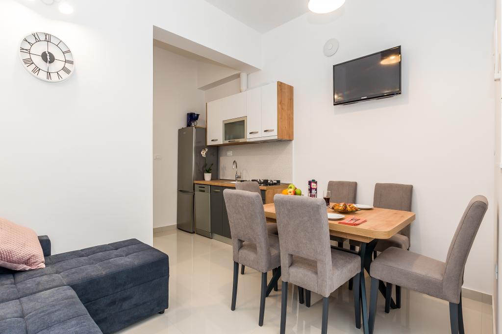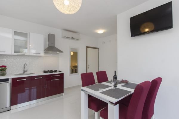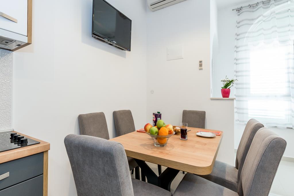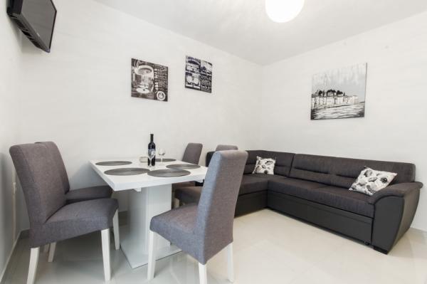 En Grebaštica, un village situé à mi-chemin entre Primosten et Sibenik offre à louer 6 appartements modernes et entièrement meublés. Notre maison est située dans un endroit calme, dans un bosquet rarement réglé, il est donc idéal pour les familles avec enfants en raison de l'abondance du terrain pour jouer autour de la maison. Du centre et nous sommes situés à environ 3-4 minutes à pied. Le restaurant est très proche. Notre offre comprend des appartements à louer pour 4-7 personnes. Les appartements sont modernes, tous les appartements disposent d'un balcon ou d'une terrasse, sont climatisées et équipées de tous les équipements et appareils nécessaires. Il y a wi-fi connexion internet. Sur demande lit bébé mis. Place de parking pour les voitures, de l'extérieur il y a une douche, grill house, tennis de table ... Nous vous souhaitons un accueil chaleureux.