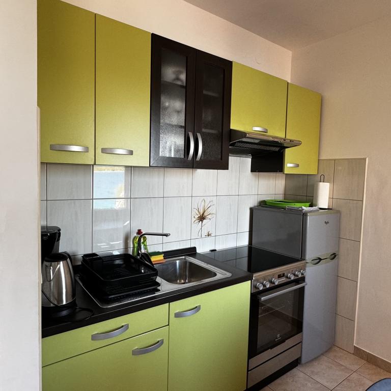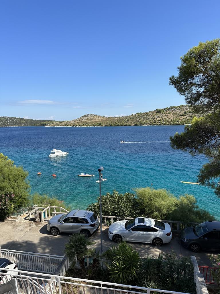 Taxe de sejour n'est pas incluse dans le prix.Très belle hôtesse, belle vue depuis les fenêtres sur la mer, quelque chose de fantastique. L'appartement est propre, les lits sont confortables, cuisine très bien équipée (four, machine à café, réfrigérateur, congélateur, grille-pain, vaisselle, couverts, casseroles, poêles, même des coupes à glace), une terrasse et une maison avec un coin barbecue sont à votre disposition, un endroit pour garer votre voiture. Accès privé sur place à l'eau, chaises longues, douche et deux SUP à la disposition des clients. Ma fille est ravie de nager en SUP. Une ville charmante et calme avec de belles vues, une promenade pour les promenades, à proximité de Primosten, une belle vieille ville et des plages. Pour les visiteurs, une base pour des excursions à Šibenik, Trogir, Krk, etc. Nous avons passé un très bon moment, nous reviendrons avec plaisir, je recommande. Sławka