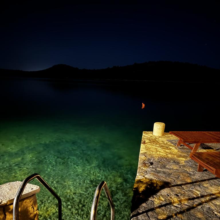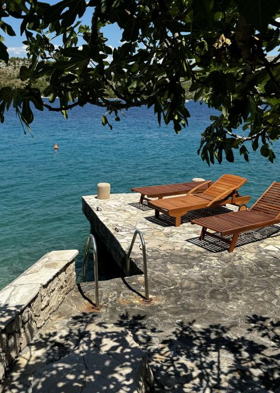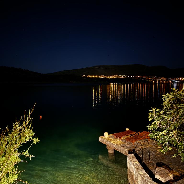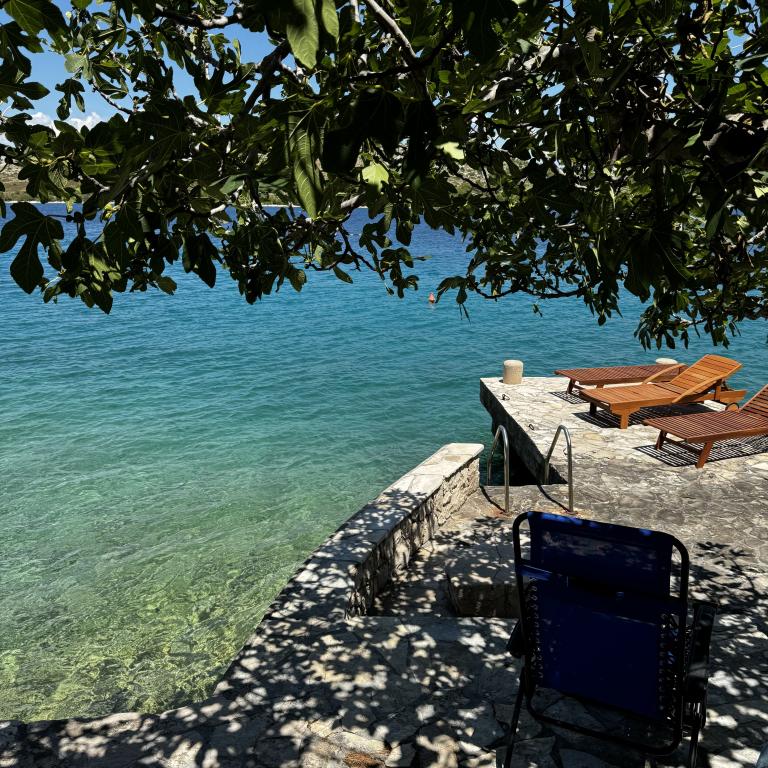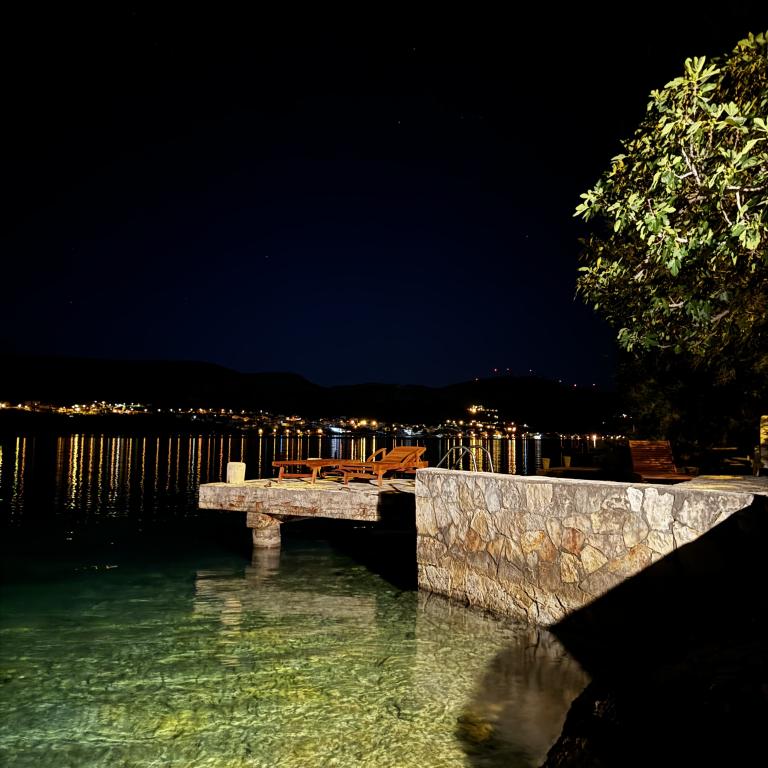 Appartements en bord de mer avec une plage privée devant la maison. Première rangée de mer dans un endroit calme et attrayant Sparadica. Mer cristalline.